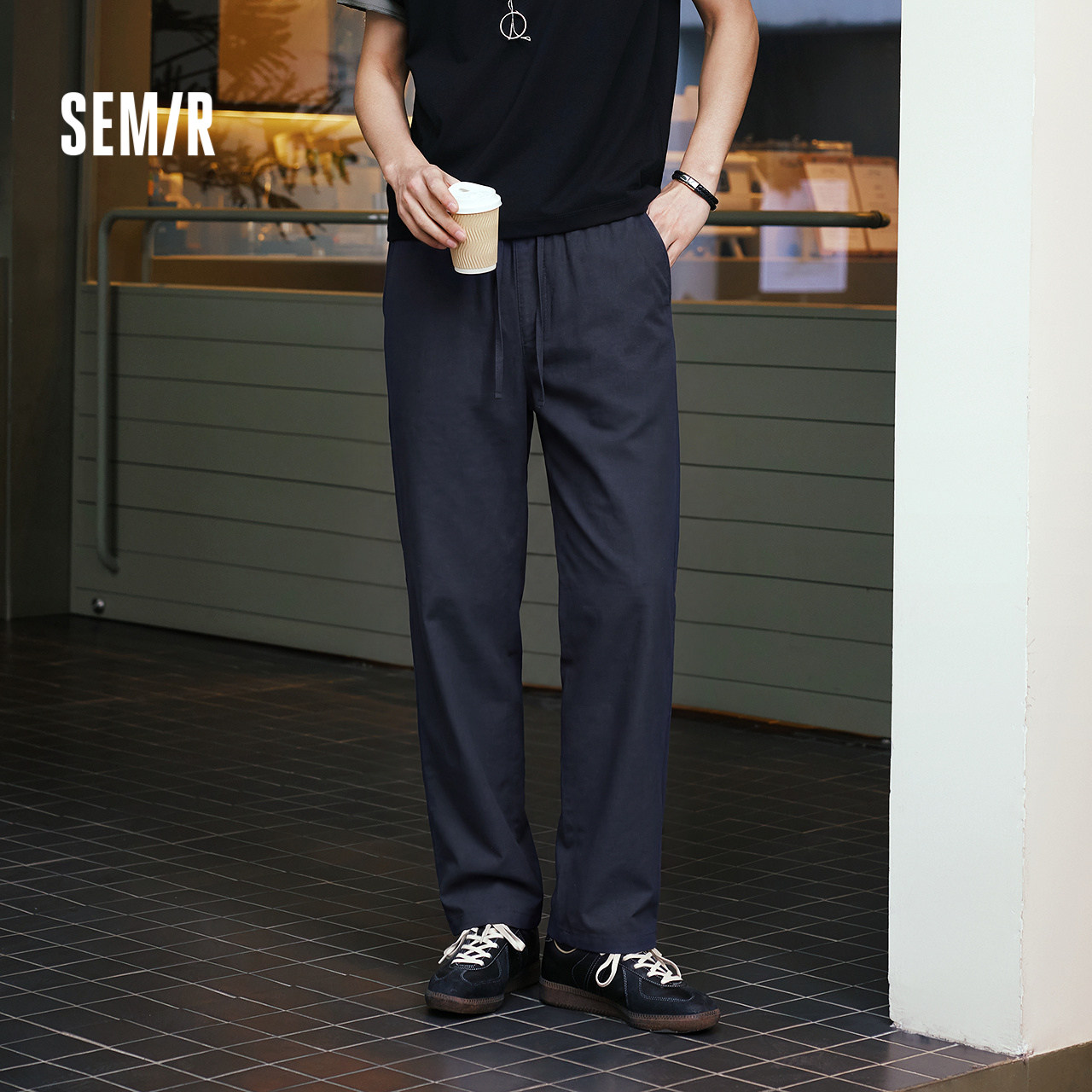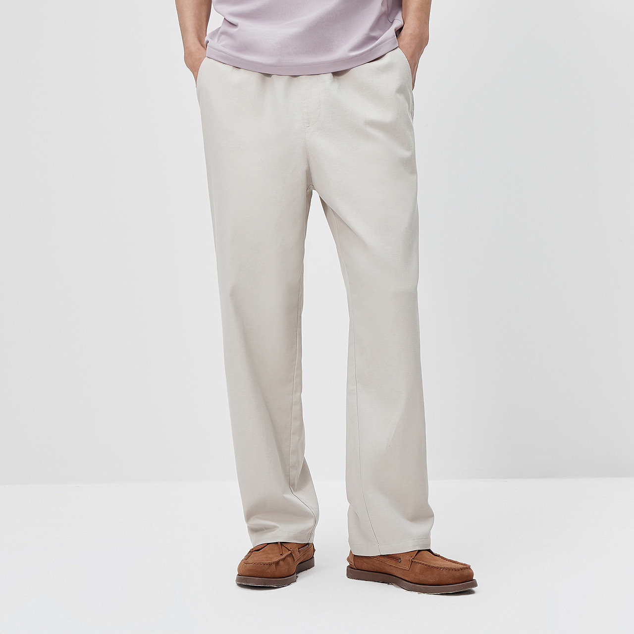 森马休闲裤男春夏舒适宽松直筒裤子2026新款纯色棉麻弹力斜纹长裤