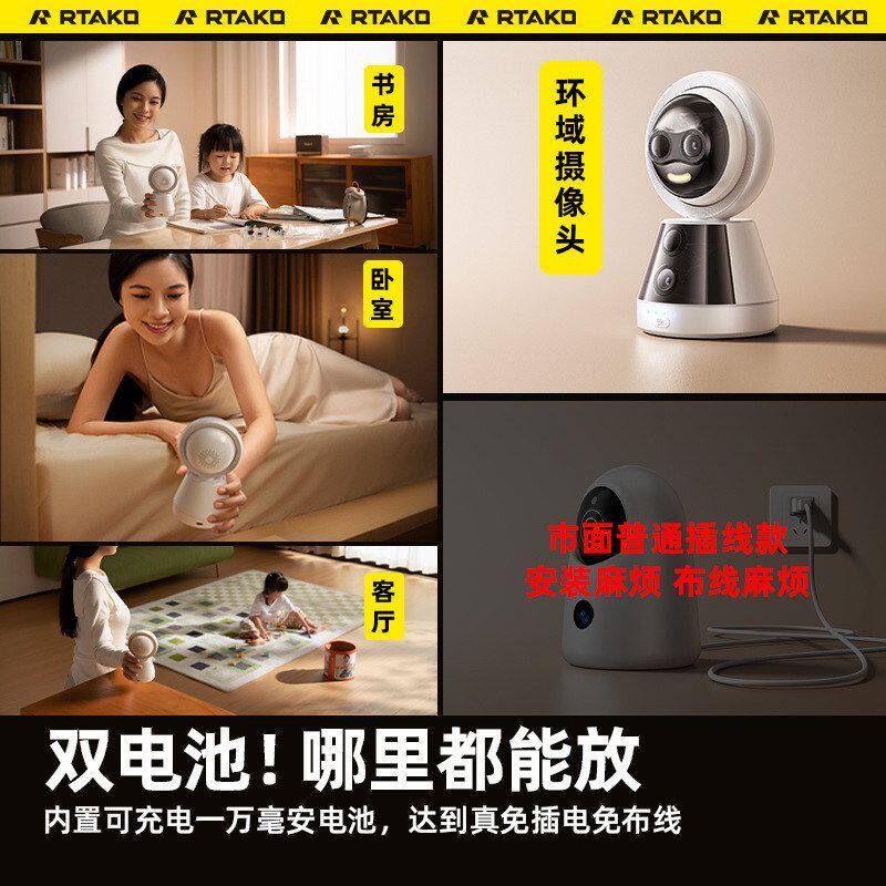 家用无线摄像头度免插电监控器夜视无需远程网络手机高清360智能