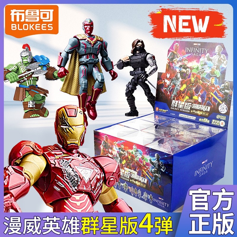 布鲁可漫威英雄积木人群星版第四弹对决盲盒玩具钢铁侠周边隐藏款