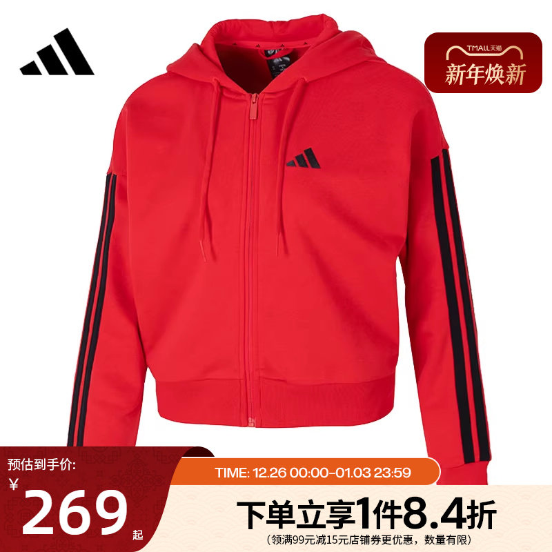 阿迪达斯官网春季女子运动休闲连帽夹克外套IS6999