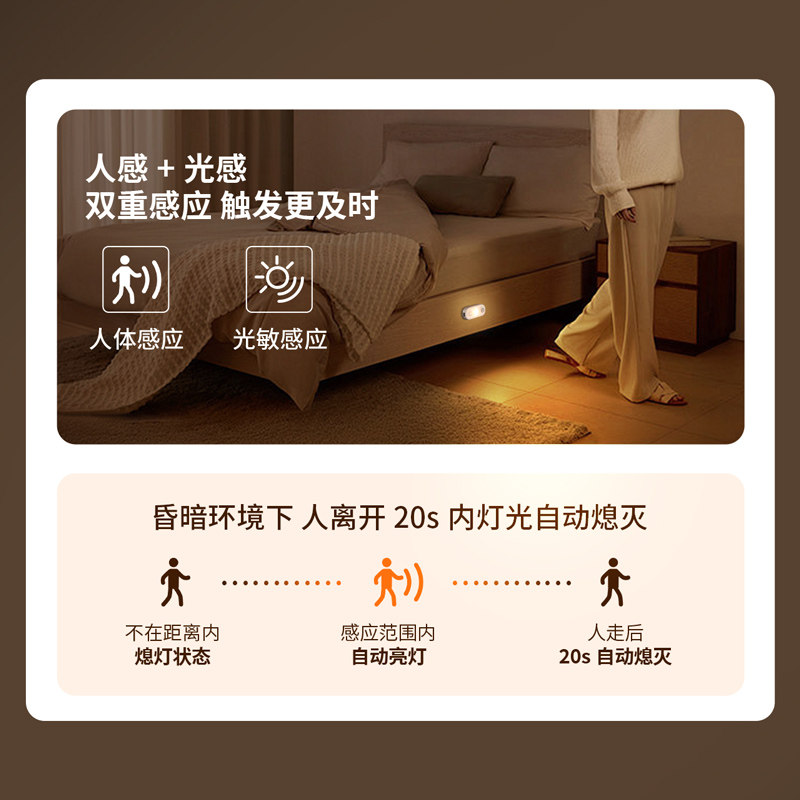 自动人体感应灯起夜卧室婴儿喂奶护眼壁侧发光过道充电小夜灯地脚