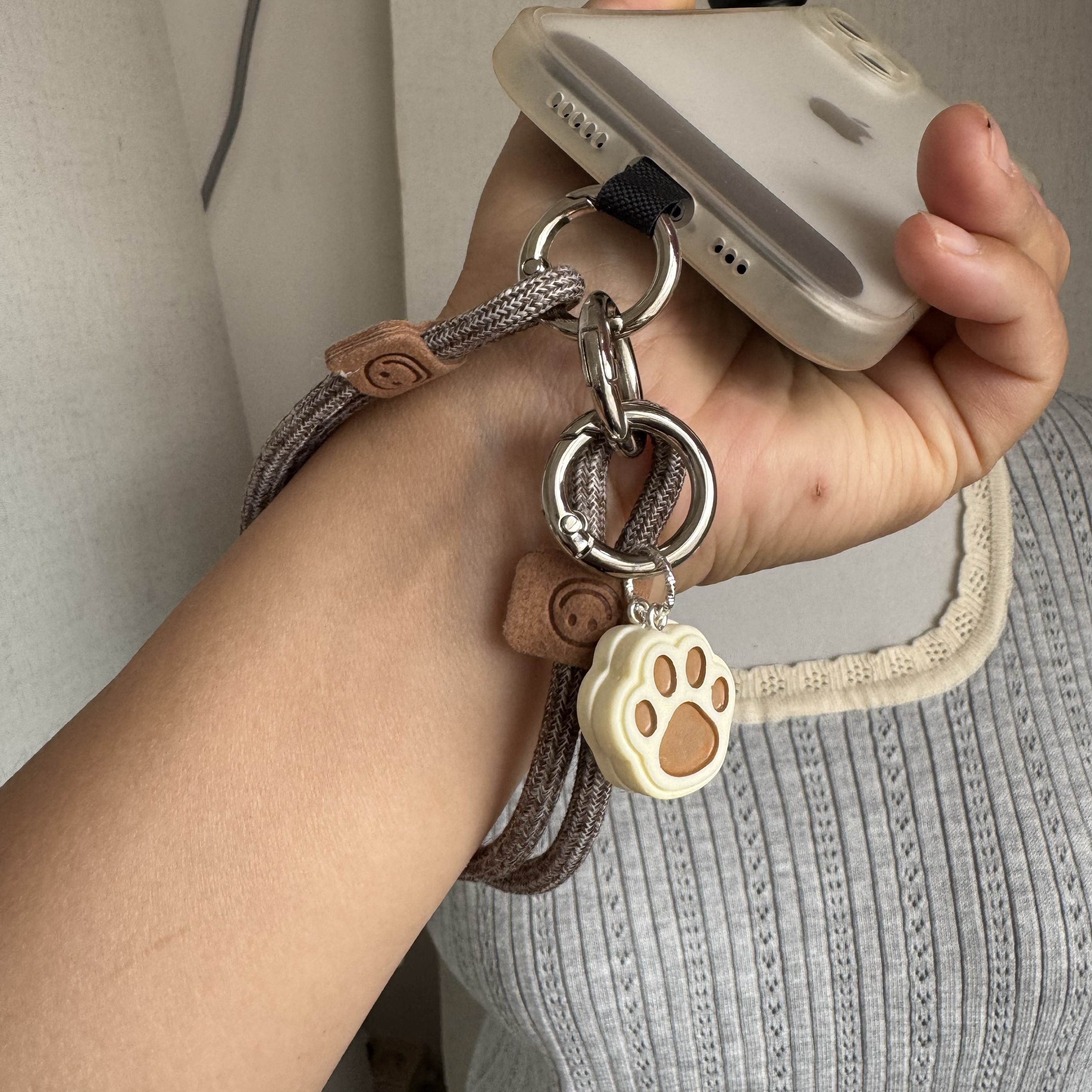 简约ins双面猫爪手机壳挂绳手腕式挂链钥匙扣相机挂件防丢绳挂饰