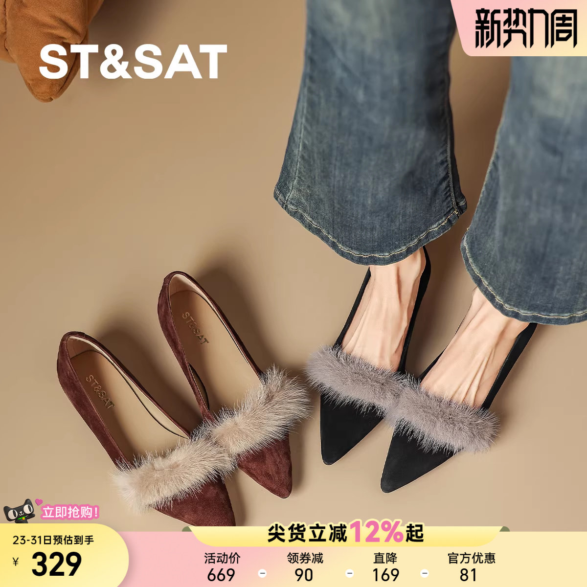 星期六尖头浅口单鞋新款平底鞋外穿不累脚时尚配裙子女单鞋【直】