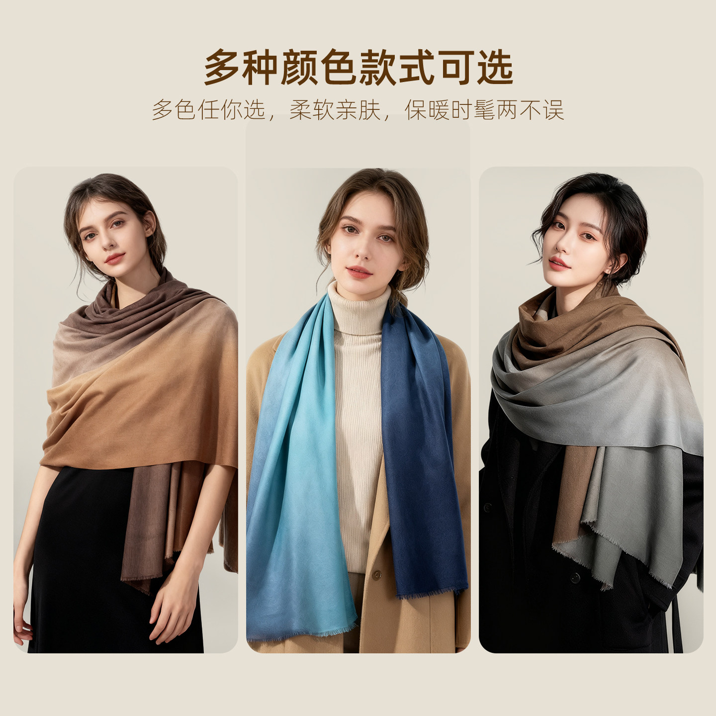 秋冬保暖大披肩女护颈时尚百搭仿羊绒围巾披肩两用新款渐变斗篷