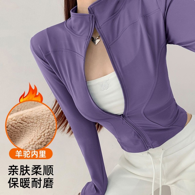 加绒加厚瑜伽外套女秋款修身拉链开衫运动夹克户外休闲健身服卫衣