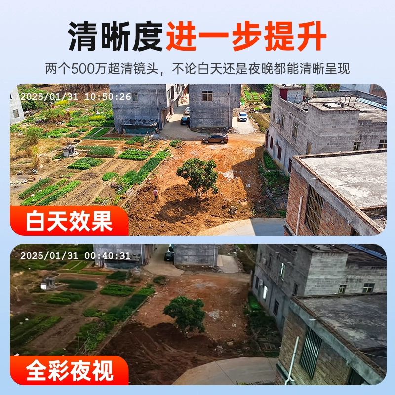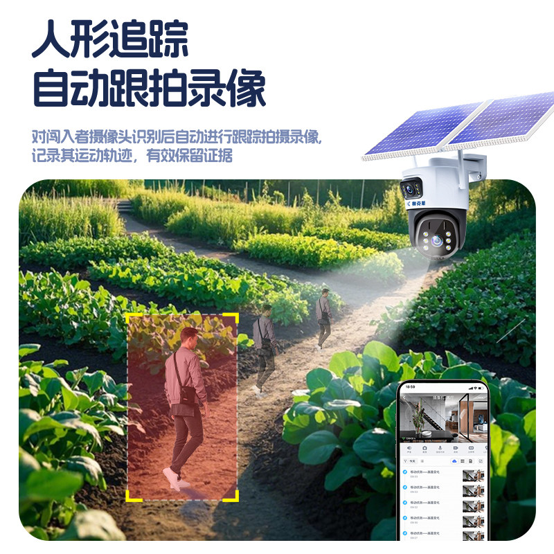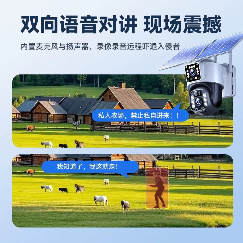 奥克斯太阳能监控摄像头360度无死角室外无电无网终身免费摄影器