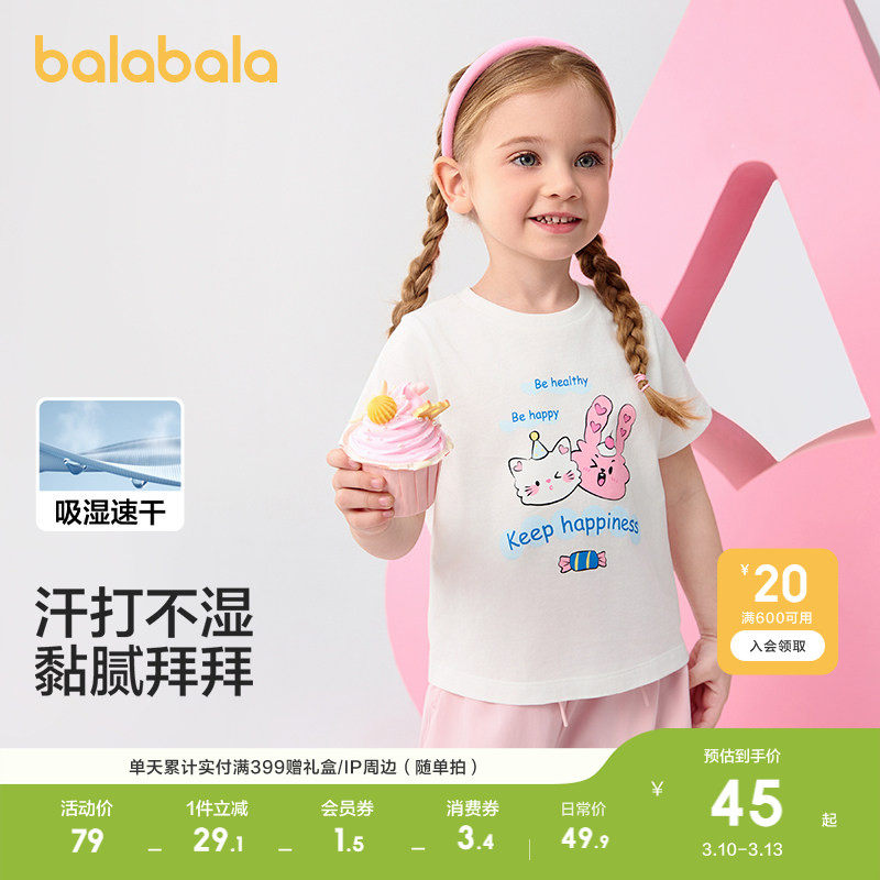 巴拉巴拉童装女童短袖t恤宝宝打底衫儿童上衣轻薄新款夏装纯棉萌