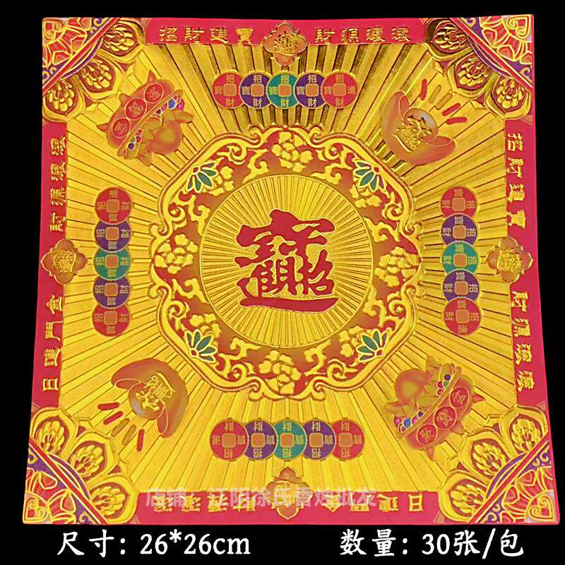 26*26cm高质双面莲花金满烫金彩金镭射荧光纸多款可选每包30页