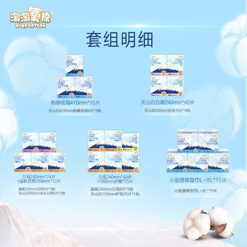 【任选8包】淘淘氧棉天山白消毒级纯棉卫生巾安睡裤组合姨妈巾