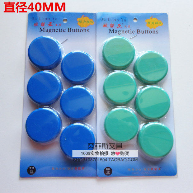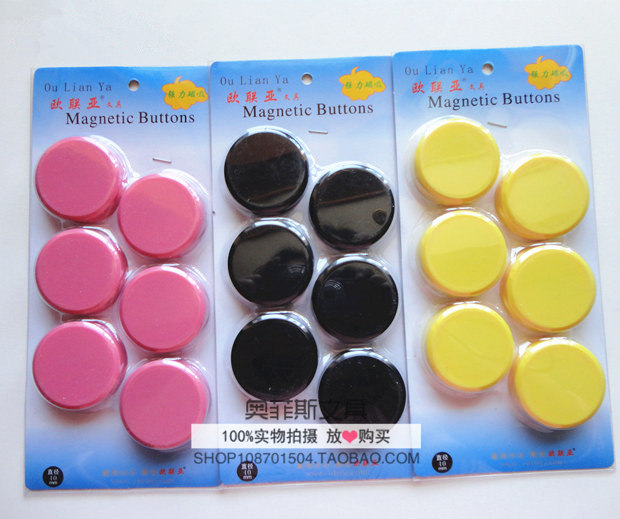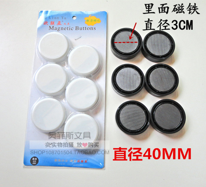 圆形办公磁粒4厘米磁扣 磁铁白板绿黑板吸铁石彩色强力磁吸6粒/卡