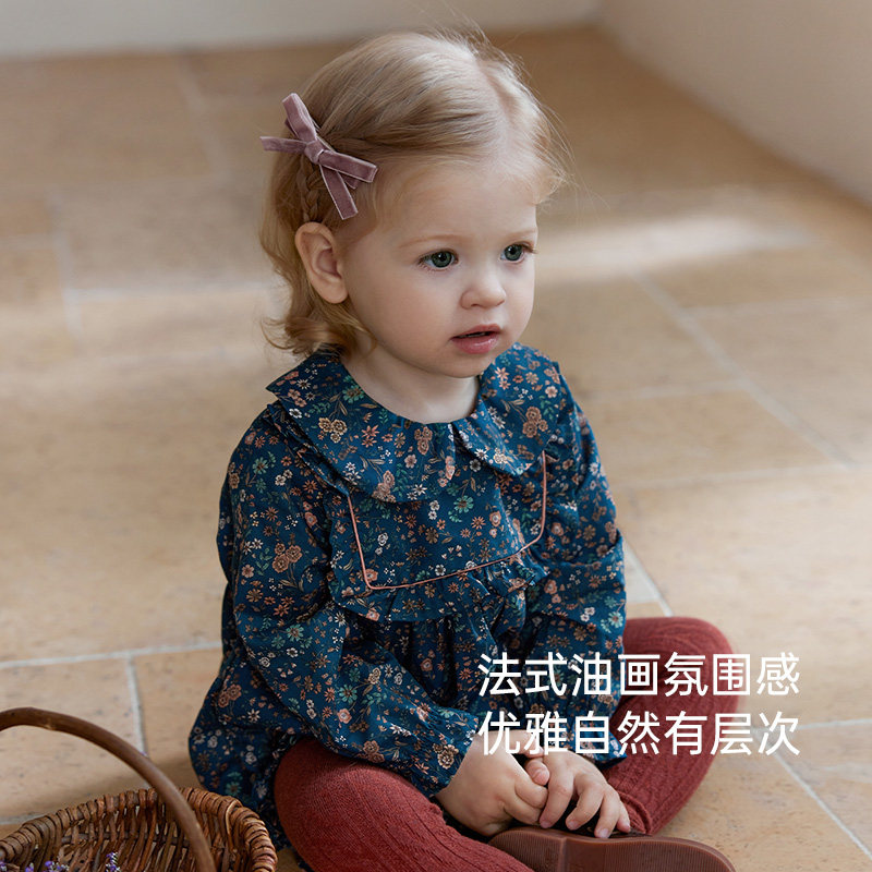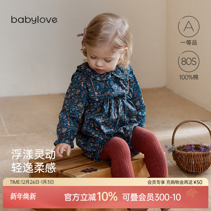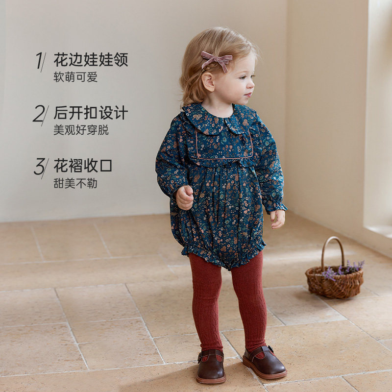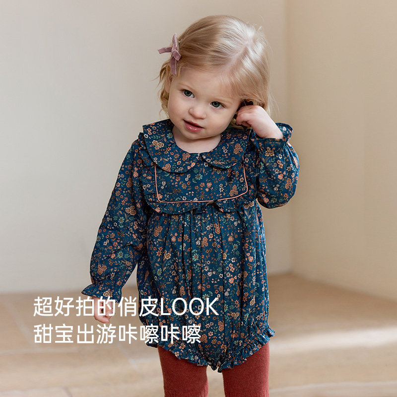 babylove婴儿包屁衣纯棉春秋碎花洋气女宝宝三角哈衣爬服卢浮宫韵