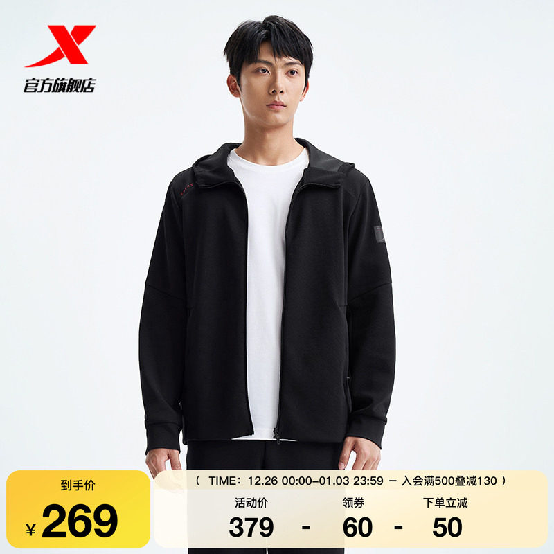 特步连帽外套男2025年秋冬新款针织夹克风衣运动上衣975329940113