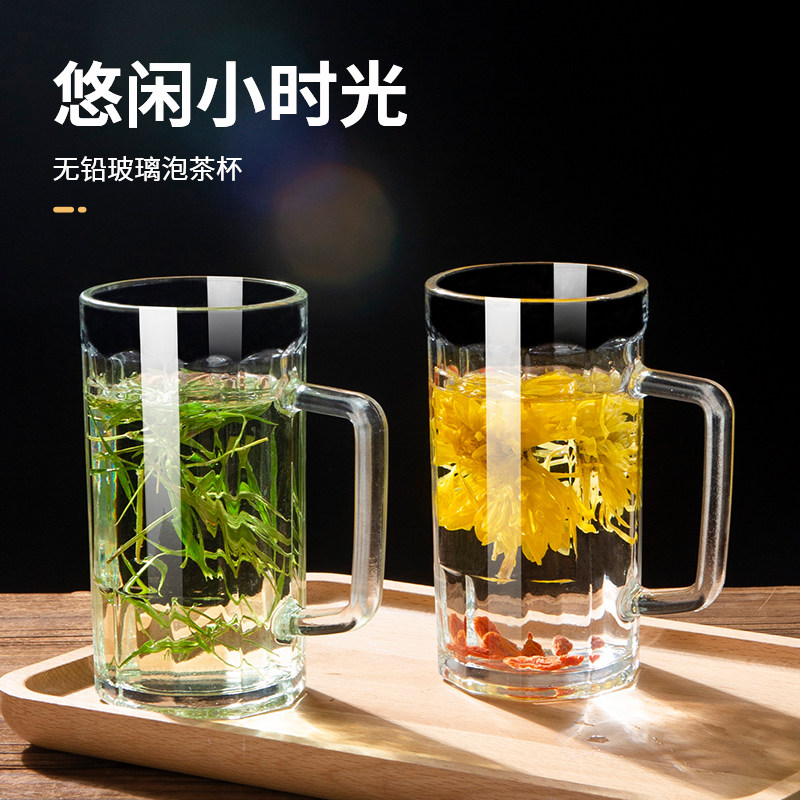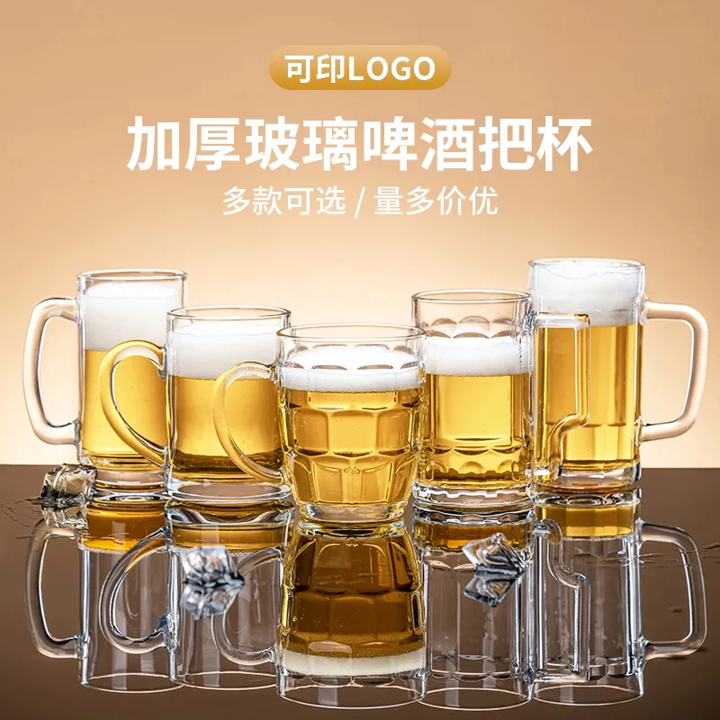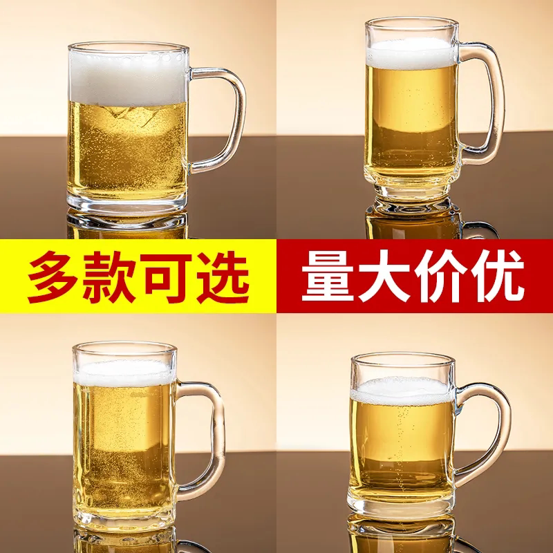 带把玻璃杯大容量啤酒杯家用扎啤杯泡茶杯子加厚喝水杯果汁杯套装