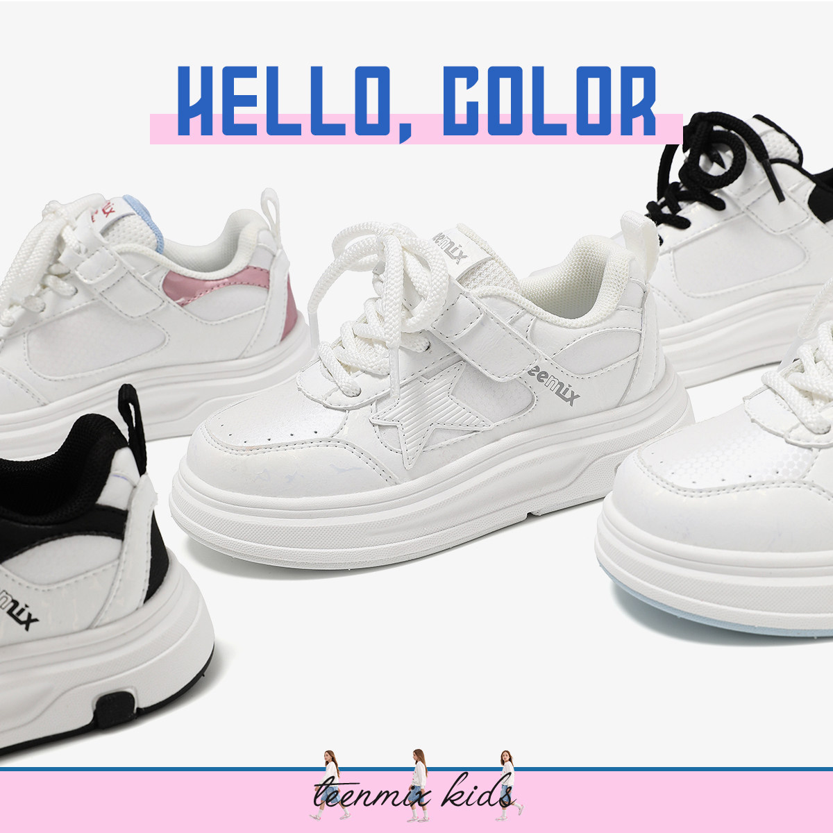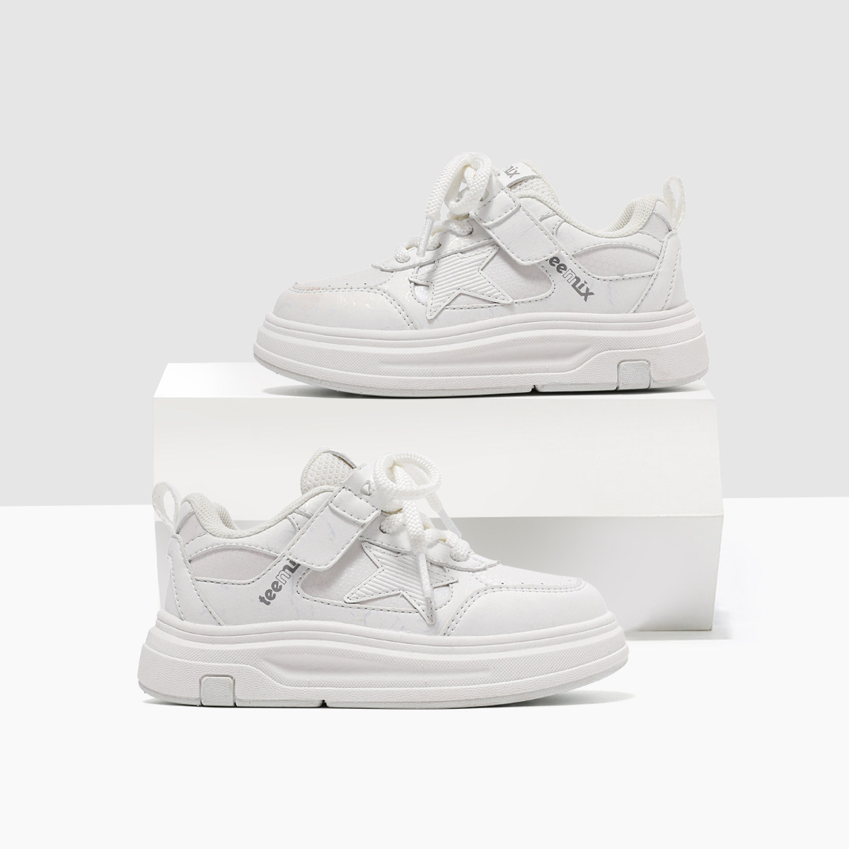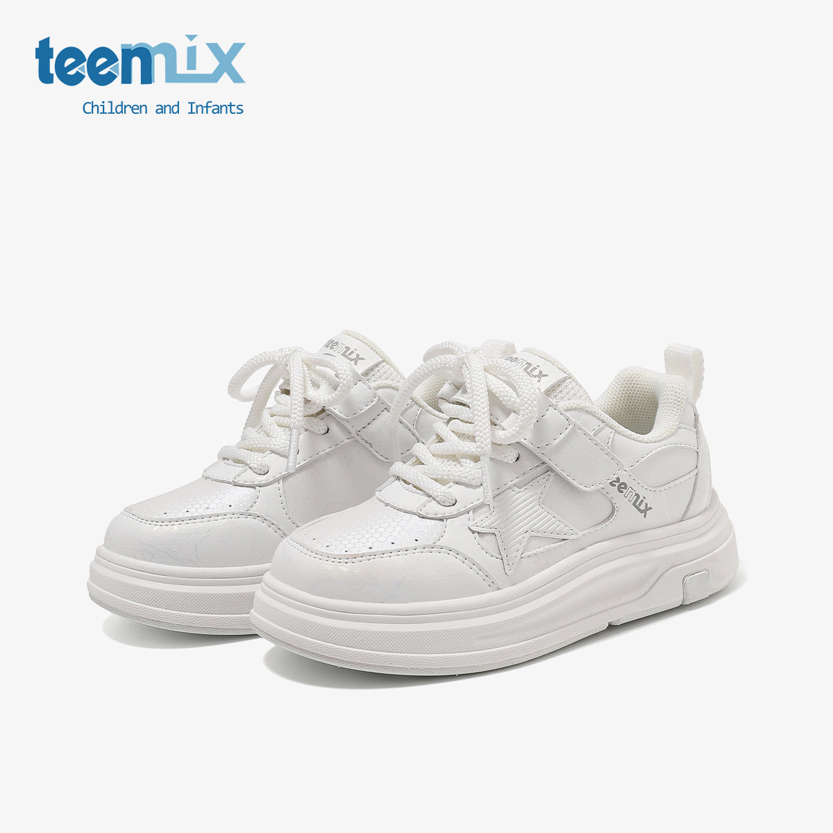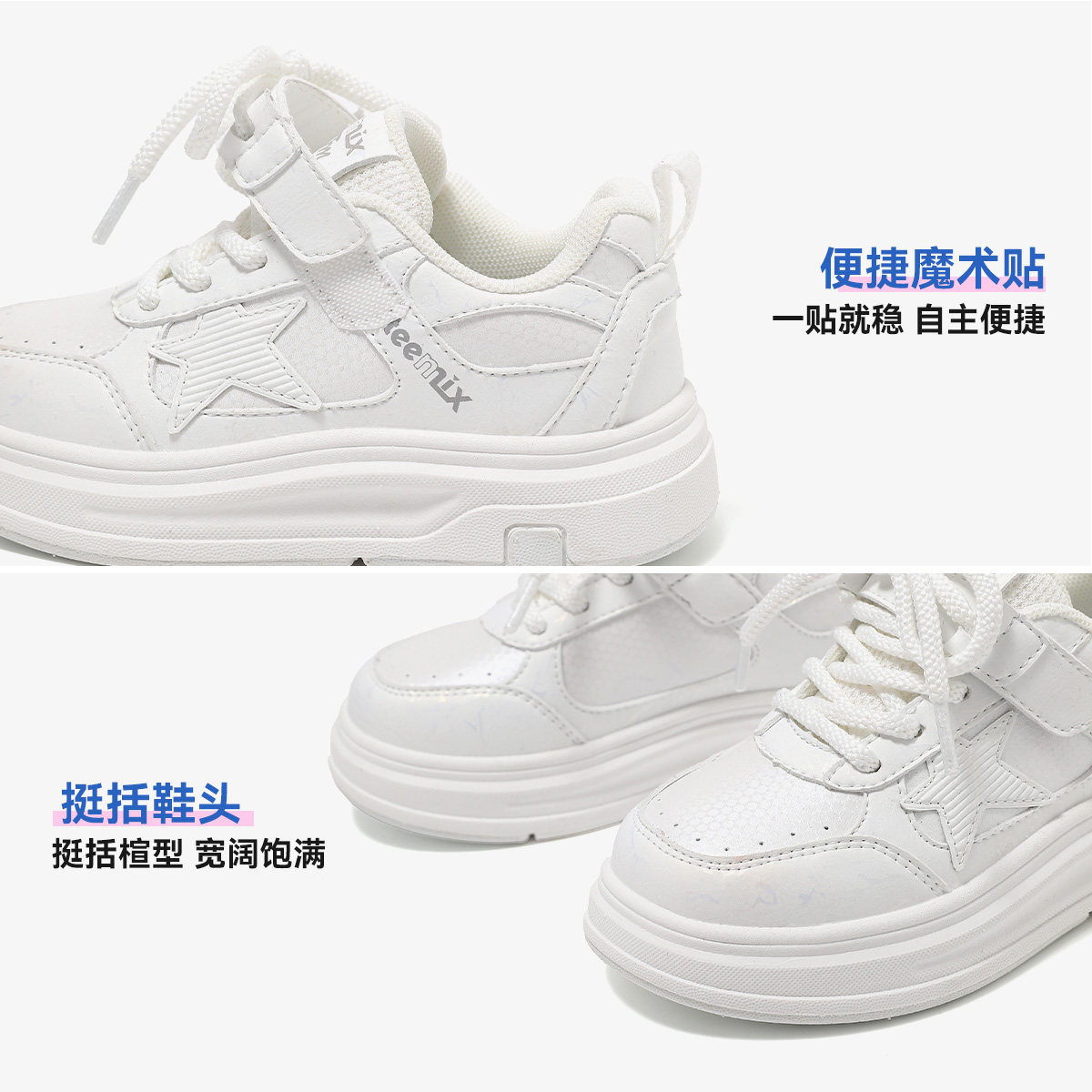 天美意童鞋2026春季新款男童透气舒适运动板鞋女童星星厚底小白鞋