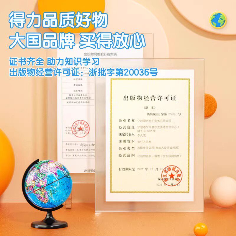 得力地球仪初中生考试专用正版小学生专用号特大号新款标准教学版儿童节日礼物启蒙20cm小书桌摆件家用男孩
