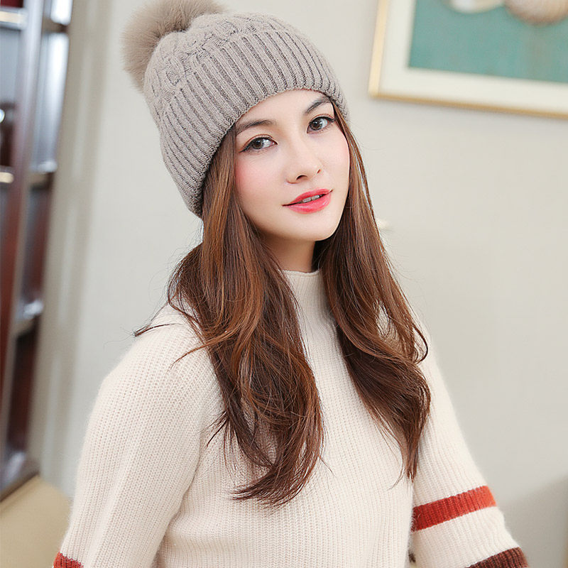 恒源祥女士秋冬百搭韩版时尚兔毛线帽保暖针织套头帽子护耳保暖帽