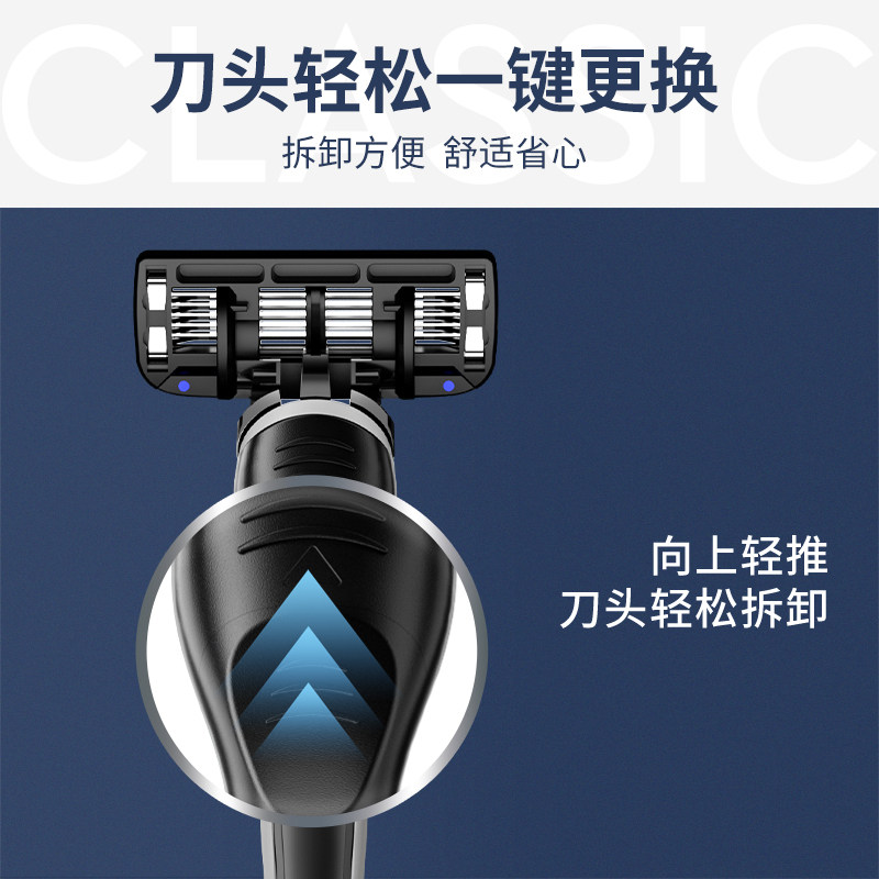 新款六层刀片男士手动剃须刀六层剃须刀片家用简约老式胡子刀便携
