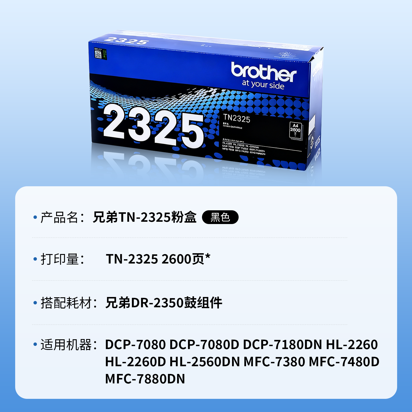 原装兄弟TN-2325粉盒2350硒鼓7080/2260D DCP-7180DN打印机墨粉盒