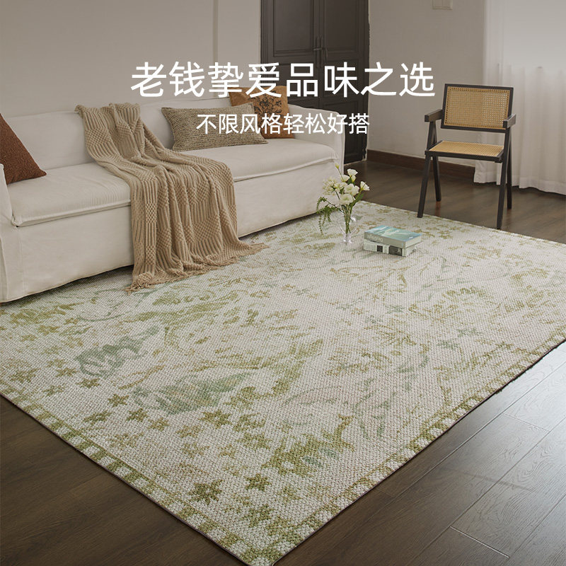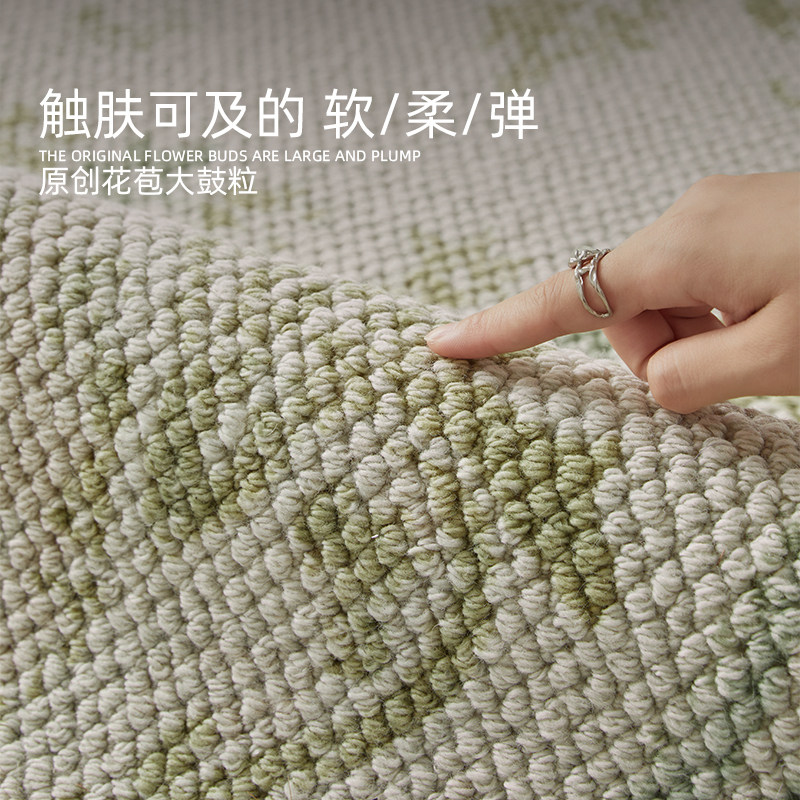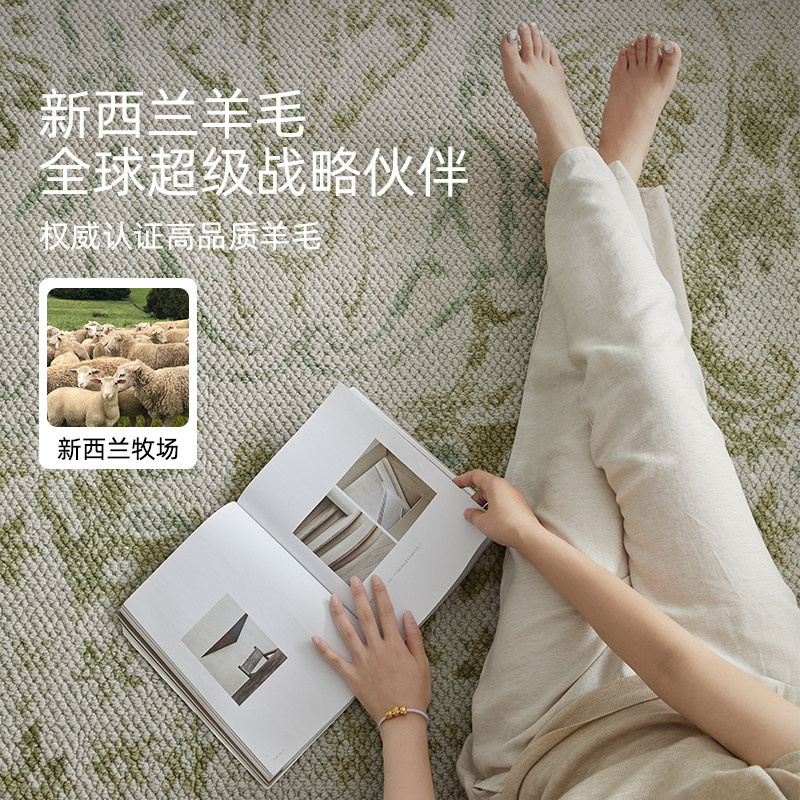 新西兰进口羊毛地毯客厅2025新款中古风绿色卧室沙发专用耐脏地垫