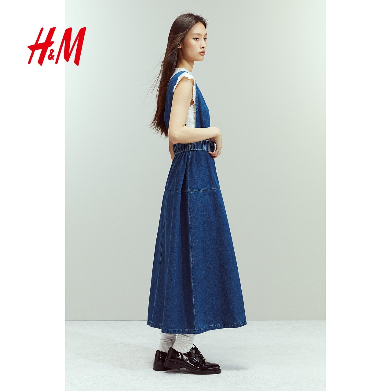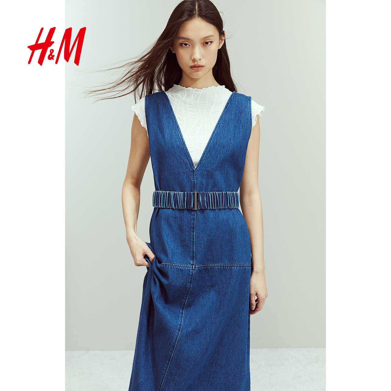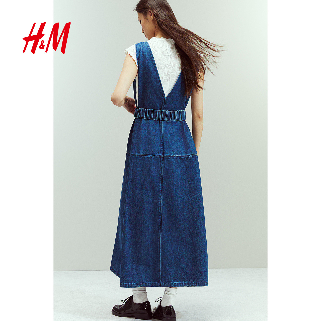 HM女装连衣裙2025冬季新款时尚无袖v领休闲束腰气质中长裙1270055
