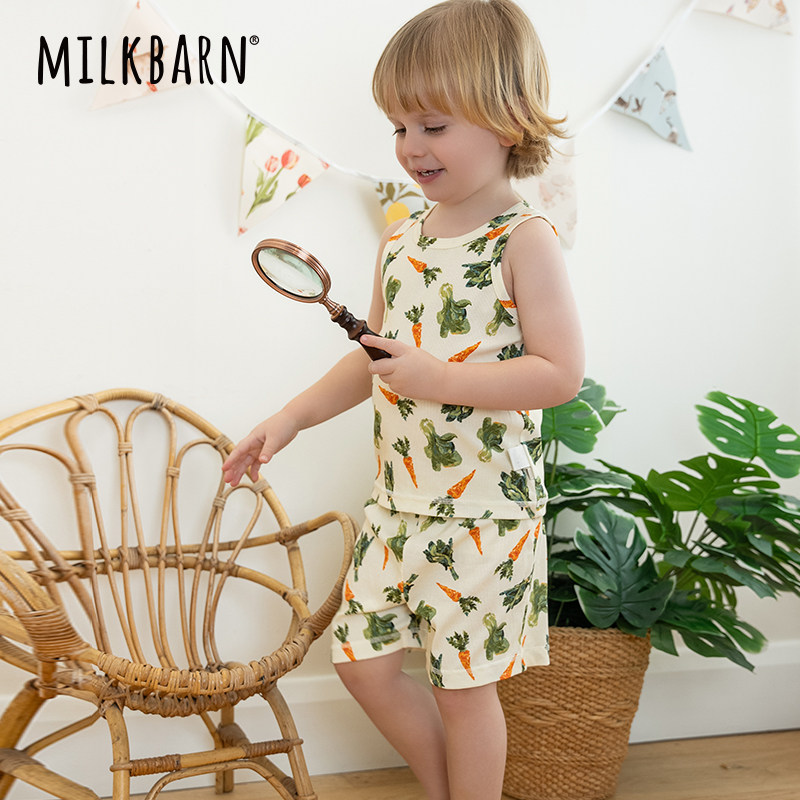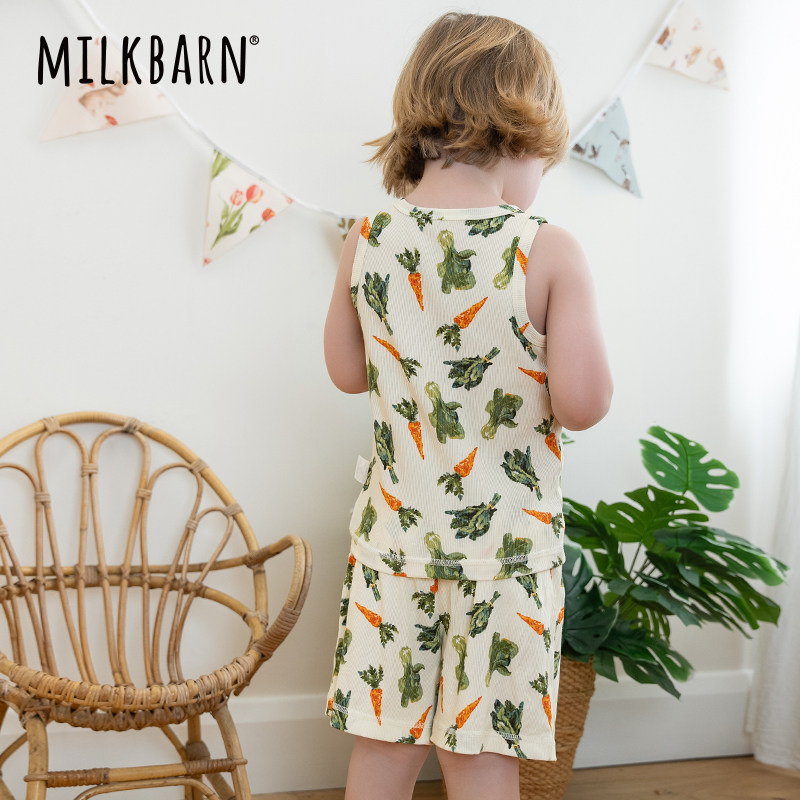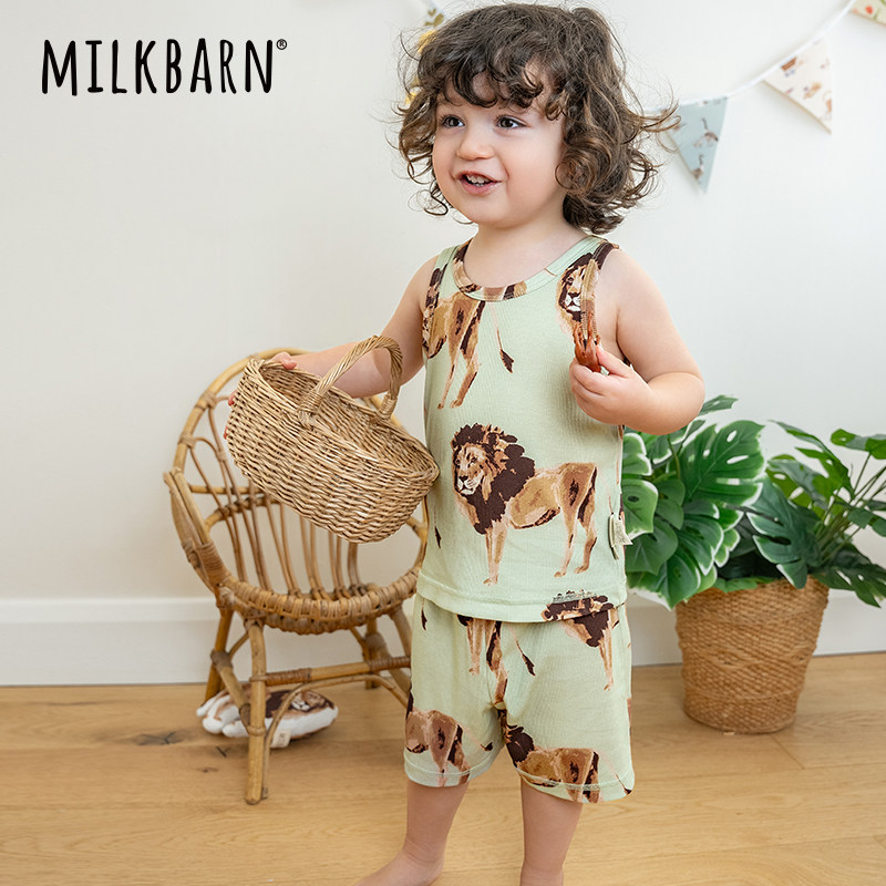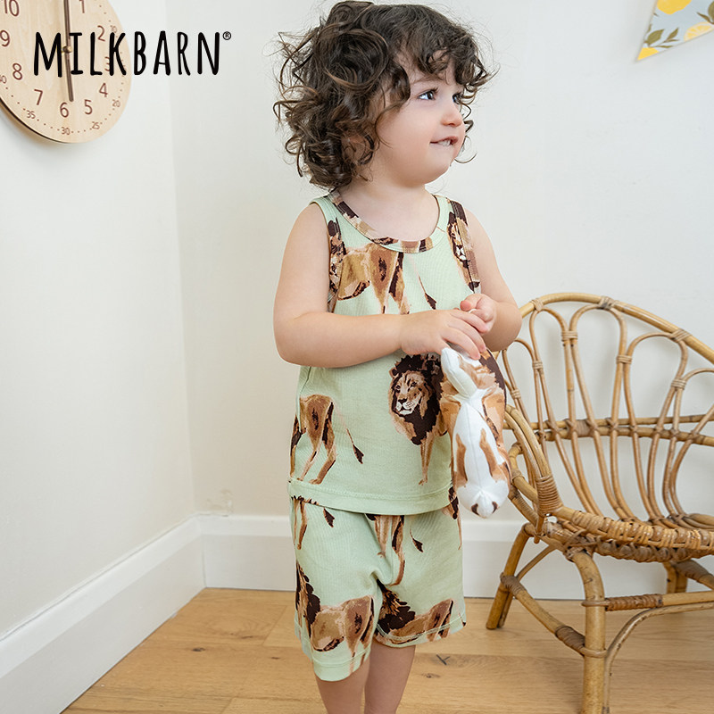 Milkbarn春夏新品儿童背心短裤套装男女童童装宝宝莫代尔衣服