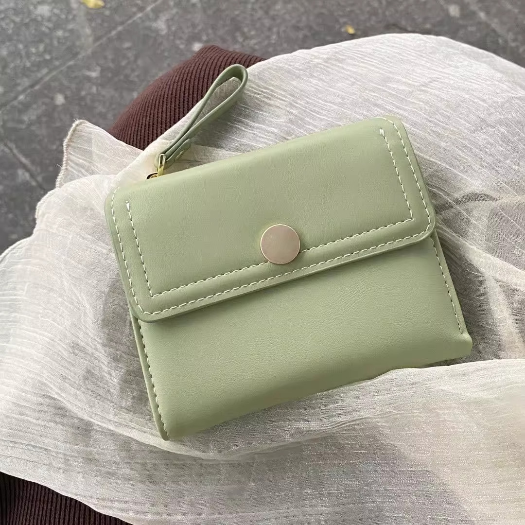 稻草人钱包女韩版学生小清新可爱零钱包小众简约钱夹小巧真皮卡包