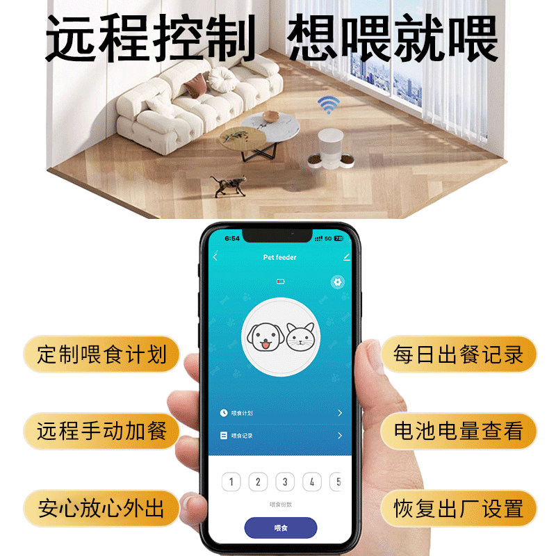 哈巴斯自动喂食器猫双碗宠物智能远程定时定量双猫咪多猫粮投喂器