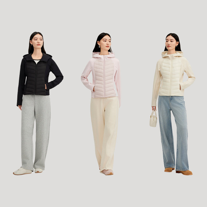 艾莱依轻薄羽绒服新款修身显瘦拼接连帽内搭秋冬搭配鸭绒保暖外套