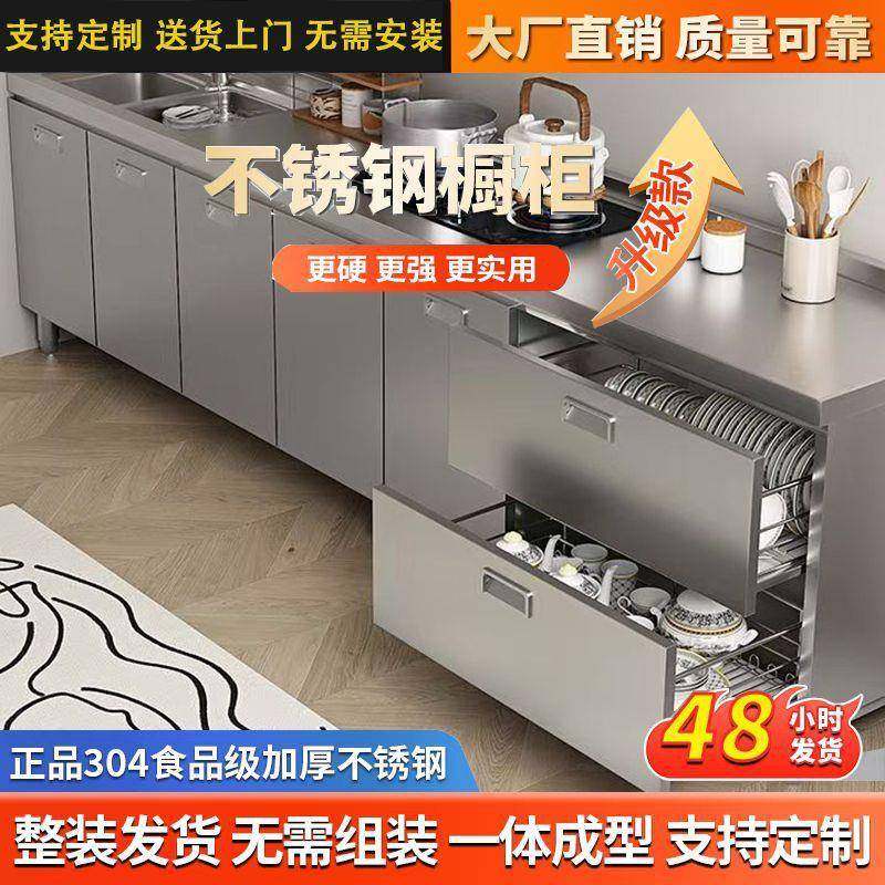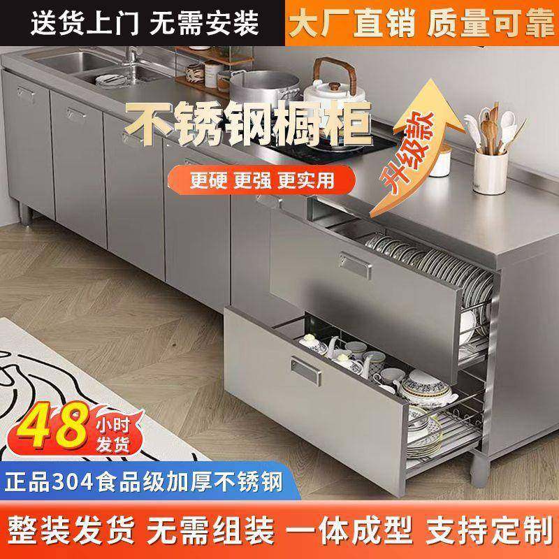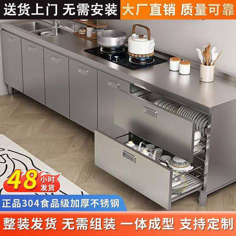 304整体不锈钢橱柜加厚厨房橱柜一体式灶台农村储物家用小户型柜.