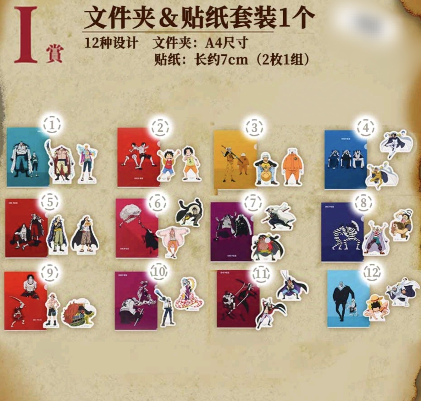 正版万代一番赏航海海贼王路飞索隆罗贝波明哥海军女帝文件夹贴纸