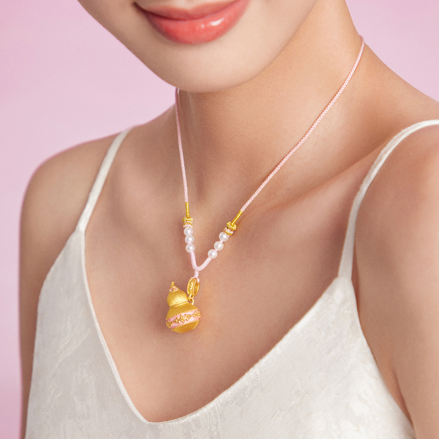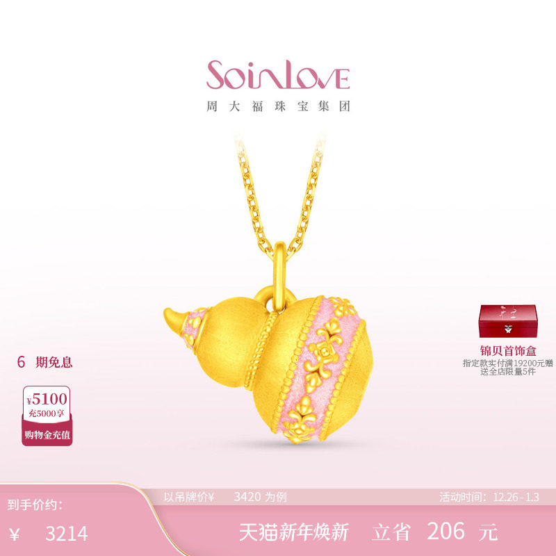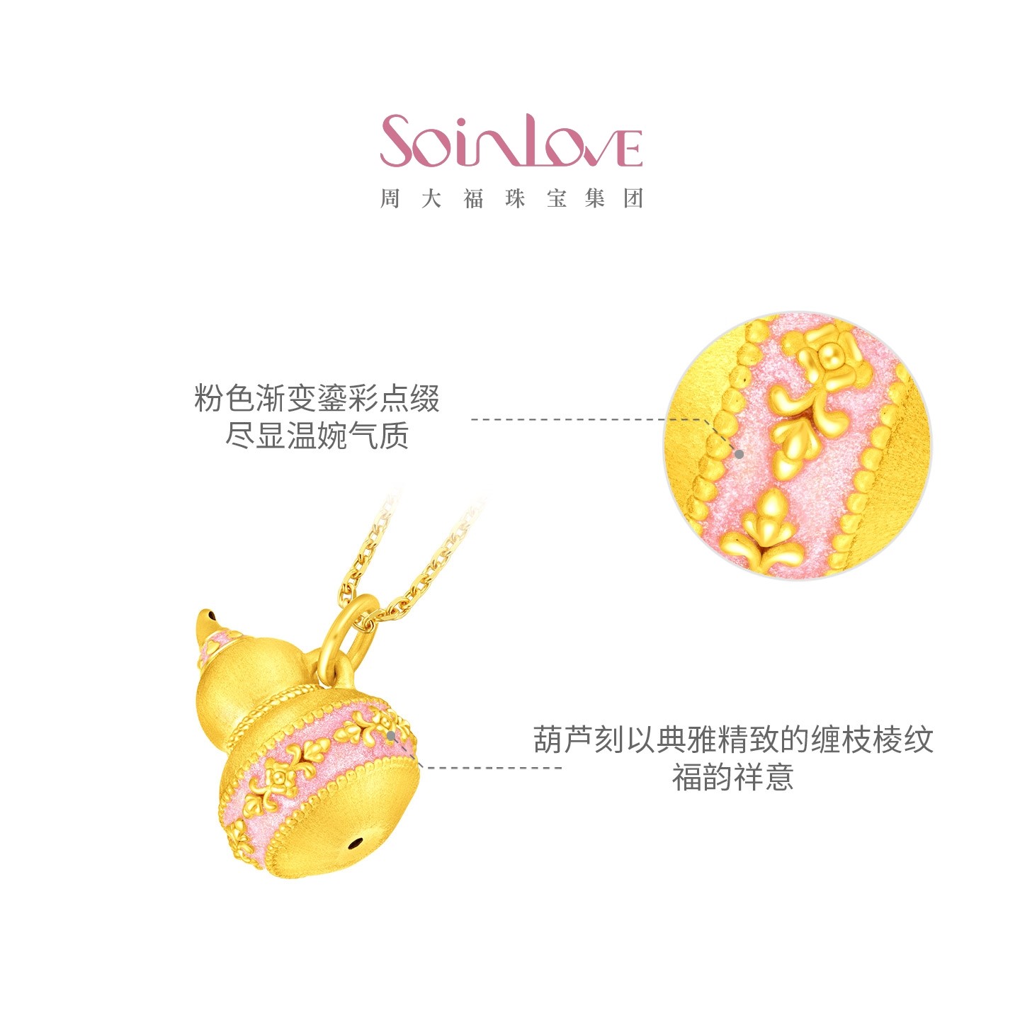 周大福SOINLOVE 蜜粉金十里红妆福禄缠枝葫芦黄金足金吊坠 VR1726
