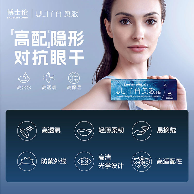 博士伦奥澈日抛高配隐形眼镜硅水凝胶日抛进口透明隐形近视眼镜