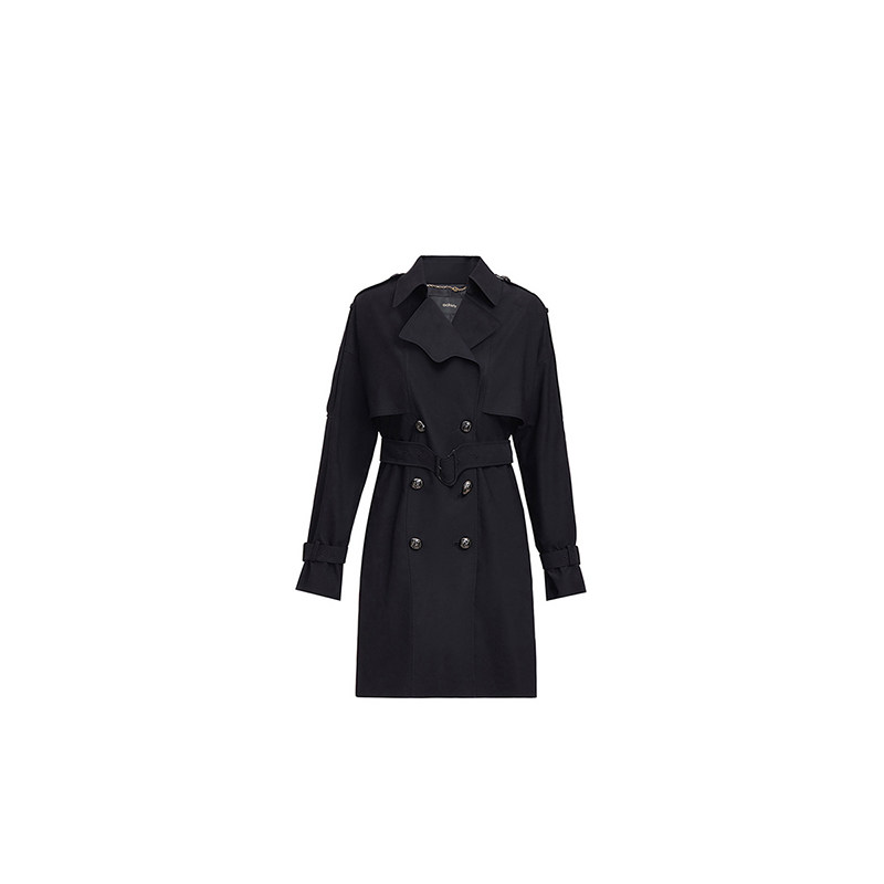 黑标系列 欧时力 醋酸中长款风衣外套女2023新款秋装英伦风腰带