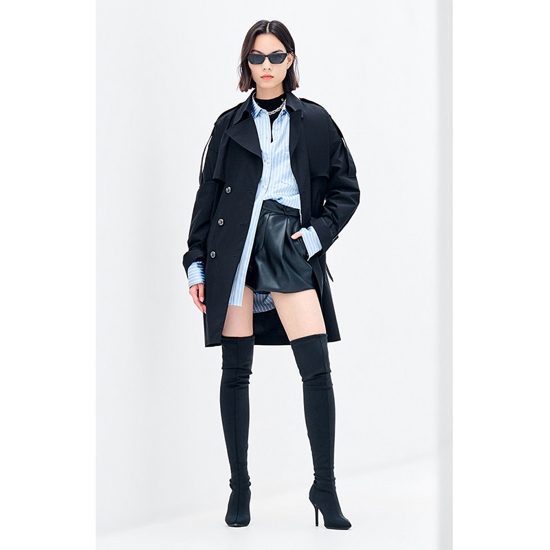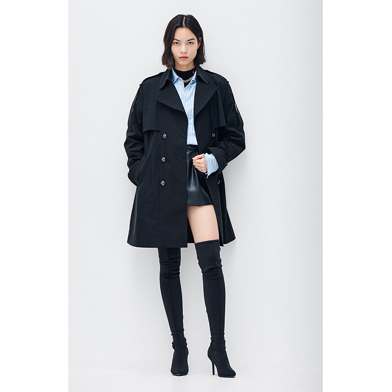 【无氟防水】Eland衣恋经典时尚风衣女双排扣宽松外套2025冬新款