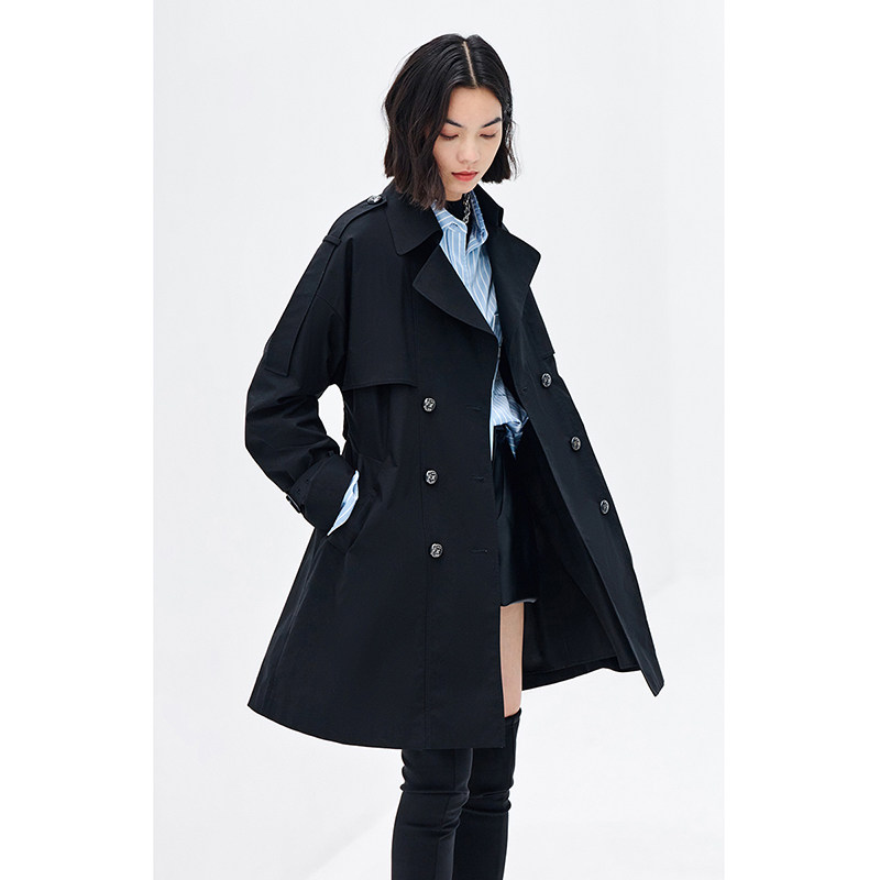 【特氟龙三防】Eland衣恋风衣女英伦风双排扣外套2025秋季新款