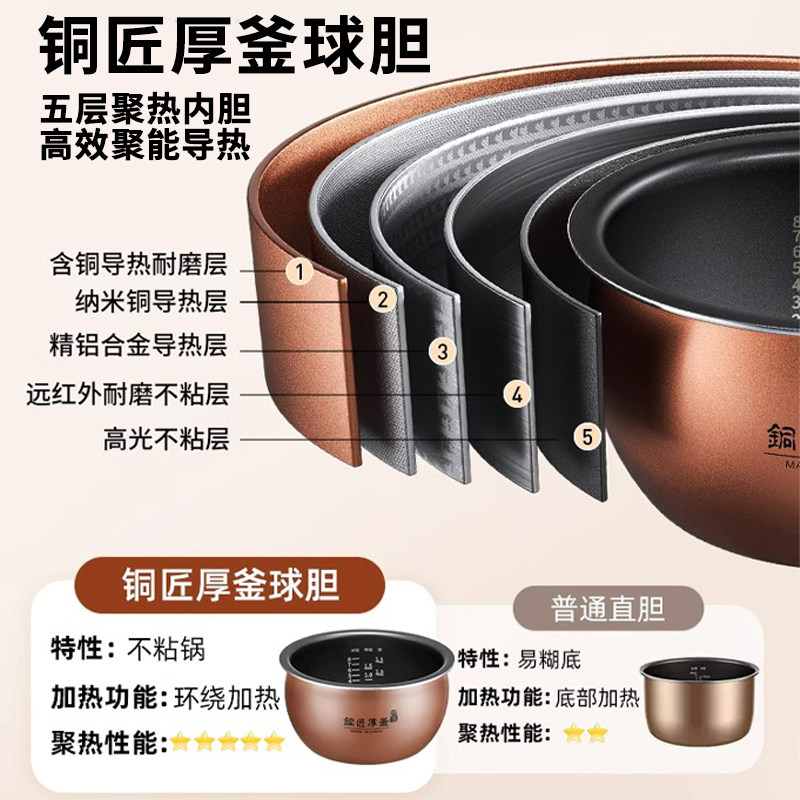 九阳电饭煲5L大容量家用多功能智能预约煮饭锅不粘铜釜3-9人正品