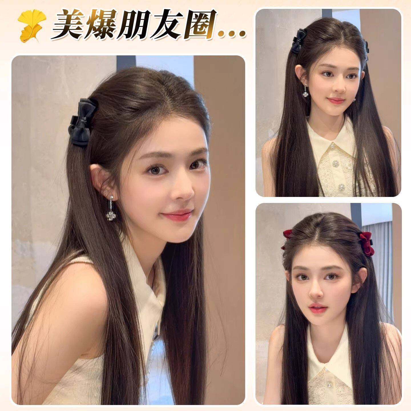 千金公主头假发辫子减龄增发蓬松精灵耳半扎蝴蝶结抓夹双马尾发束