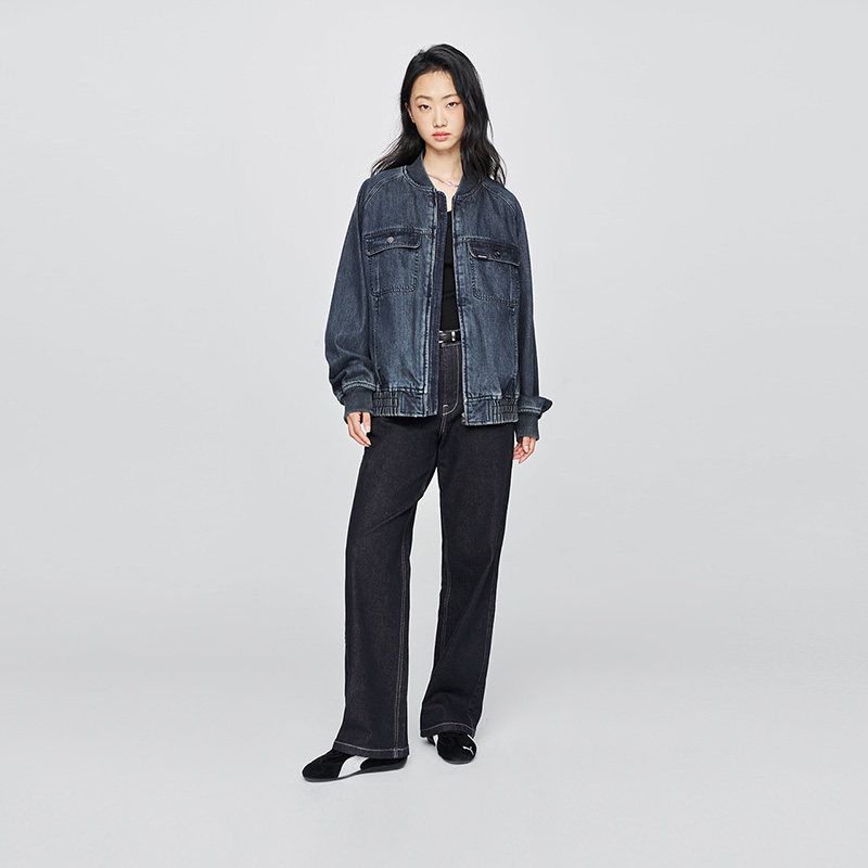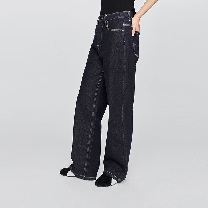 四面弹丹宁色牛仔阔腿裤25年新款宽松显瘦牛仔长裤89173