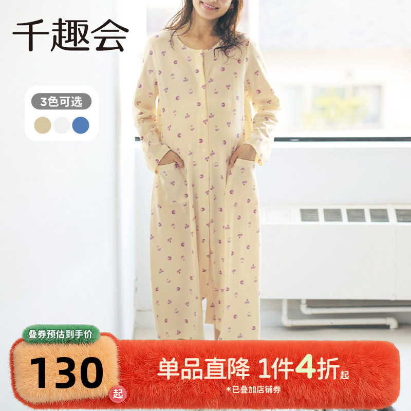 千趣会孕妇装春秋款居家睡裙连衣裙产后方便哺乳两穿棉质长裙子