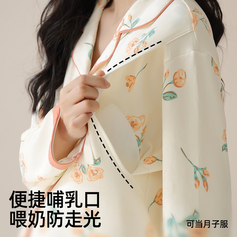 婧麒云慕丝月子服产后秋冬季纯哺乳家居服棉怀孕产妇孕妇睡衣套装