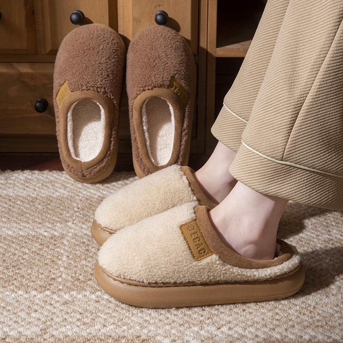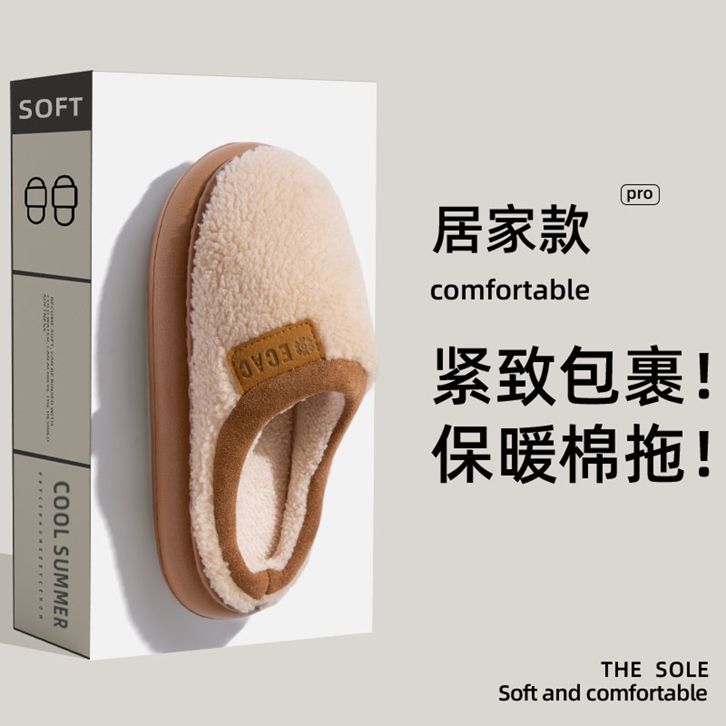 朴西棉拖鞋女士秋冬季厚底简约保暖室内居家用软底防滑情侣棉拖男