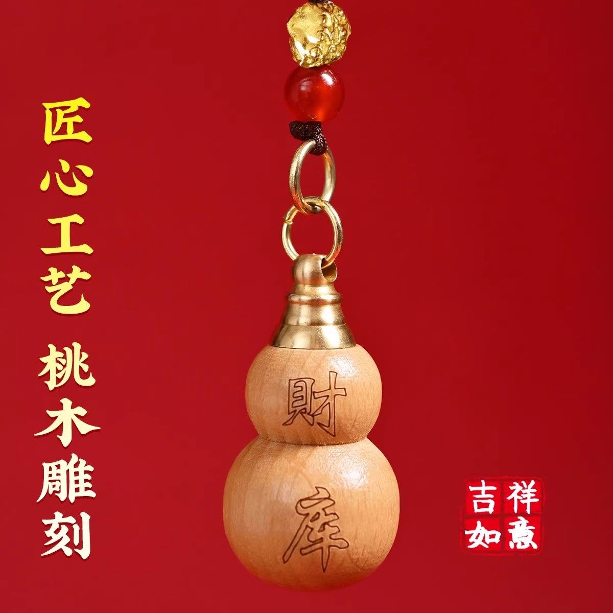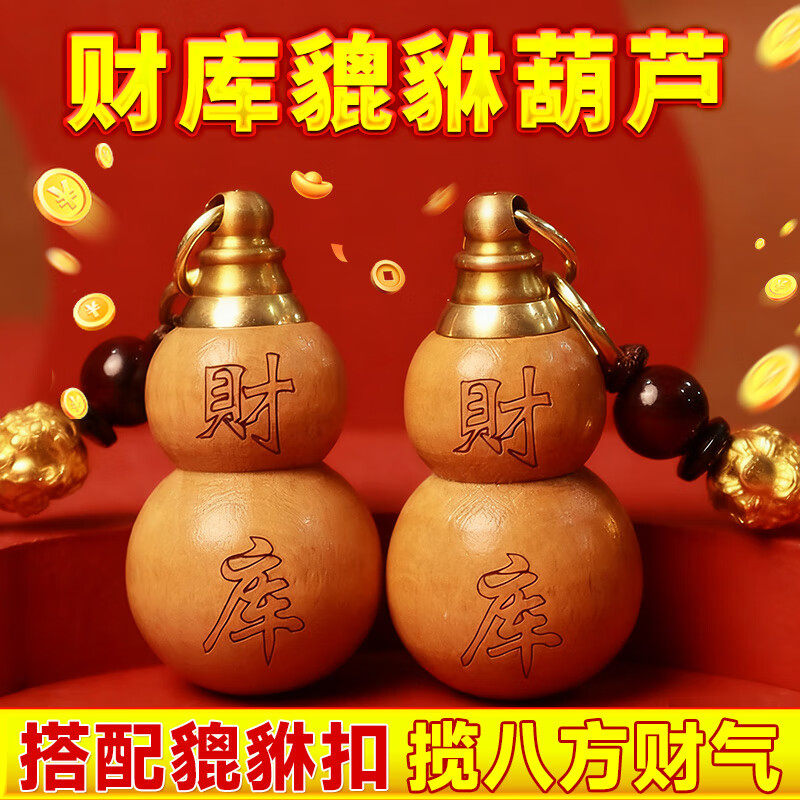 桃木葫芦挂件福禄招财镇宅摆件把玩件本命年钥匙扣官方旗舰店貔貅