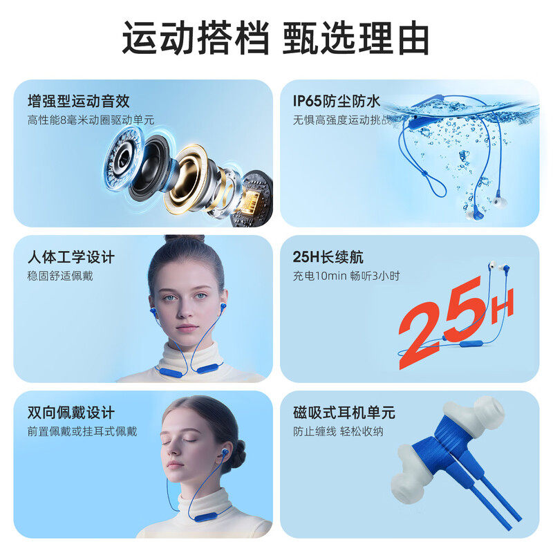 超长续航大电量蓝牙耳机无线颈挂脖式运动2025新款跑步专用高音质
