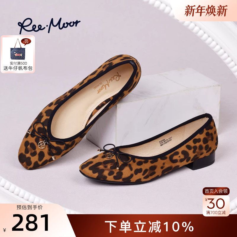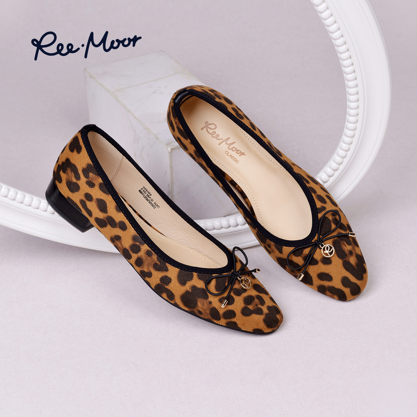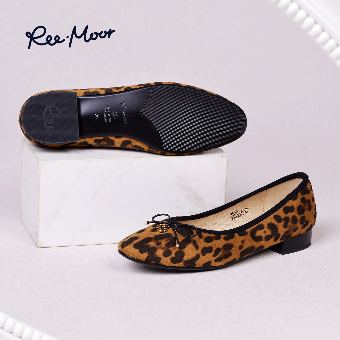 REEMOOR睿慕2025秋季新款法式蝴蝶结芭蕾舞鞋浅口单鞋豹纹女鞋