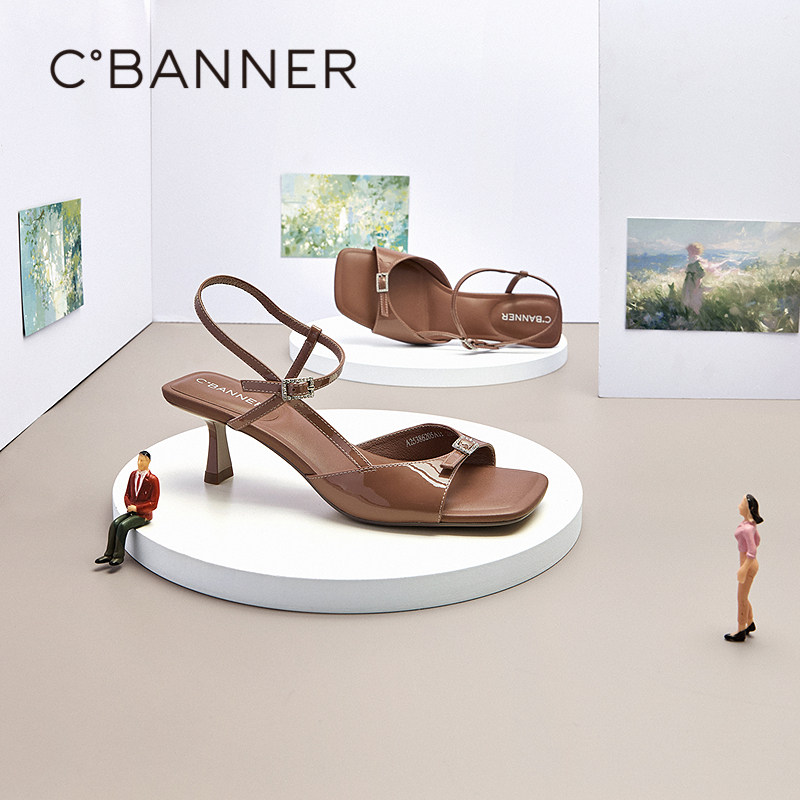 【静音系列】千百度细高跟一字带时装凉鞋女夏季新款绝美凉鞋