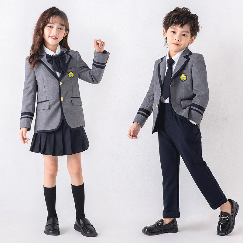 男女学生校服演出服套装幼儿园班服儿童小表演服秋季灰色衬衫英伦