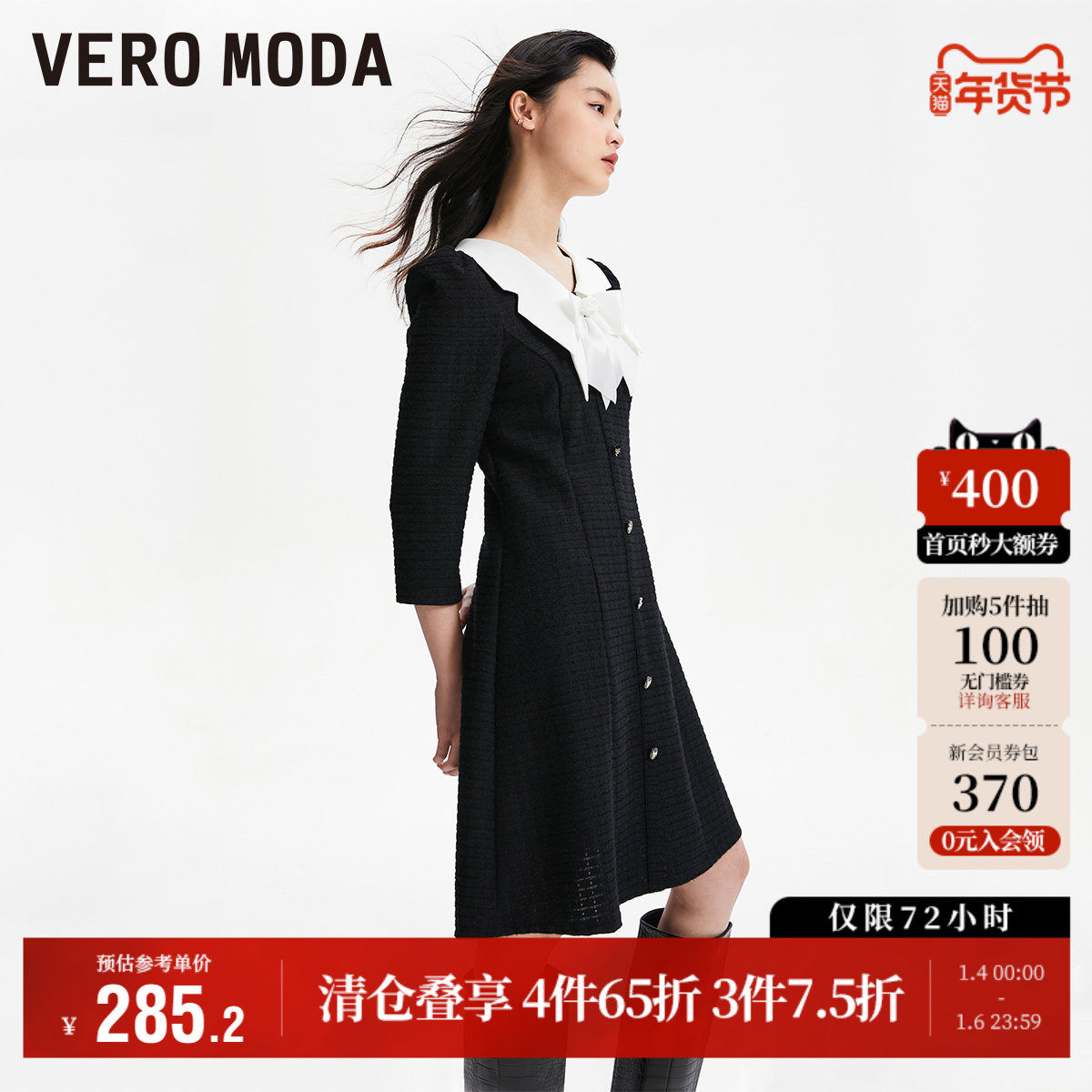Vero Moda奥莱连衣裙秋冬清仓肌理感中长裙收腰A字泡泡袖裙子女