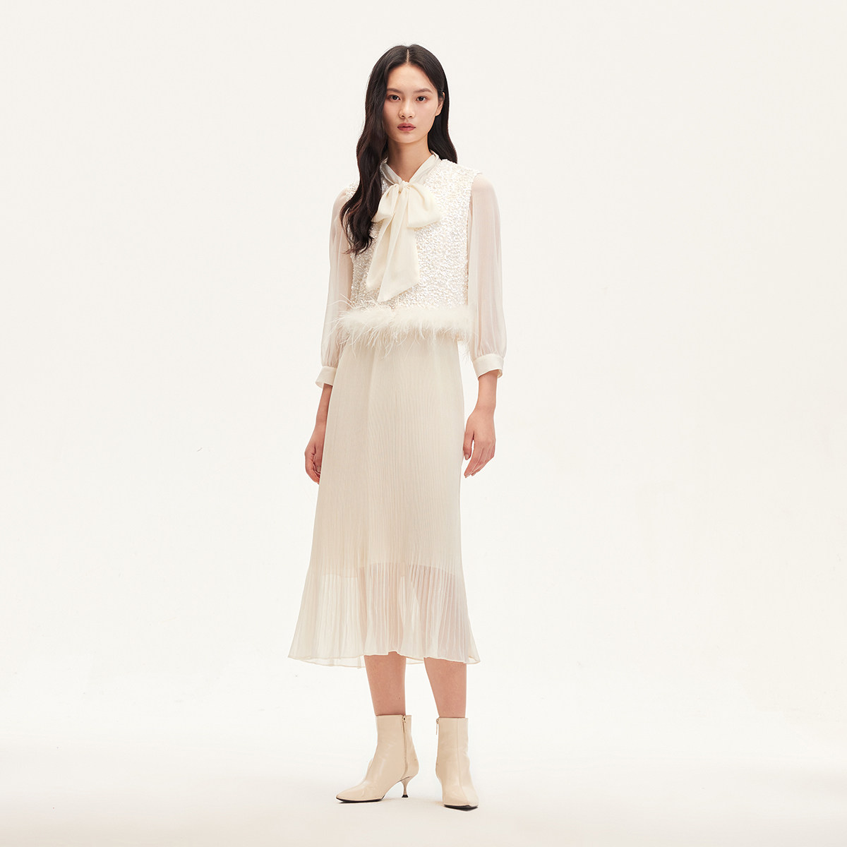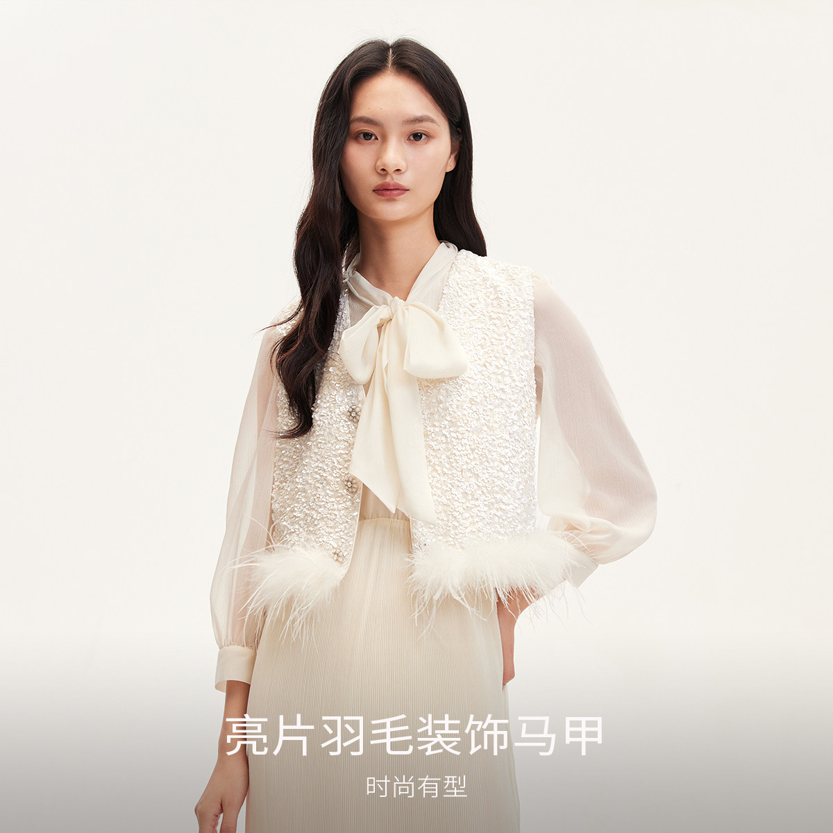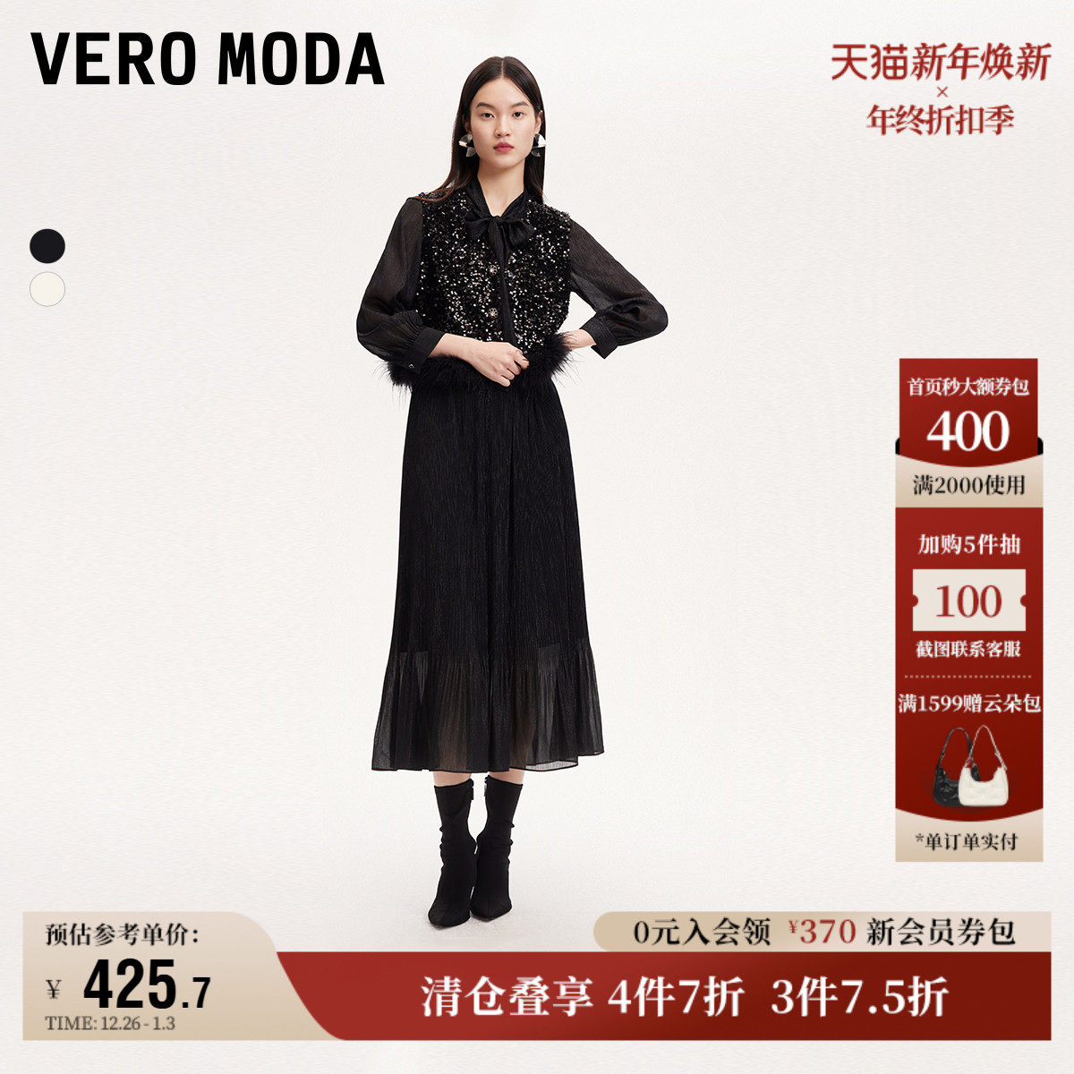 Vero Moda奥莱连衣裙秋冬新款真两件亮片马甲优雅精致气质流行