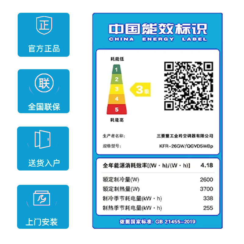 Mitsubishi/三菱重工空调变频家用客厅冷暖两用挂机官方正品QGV26