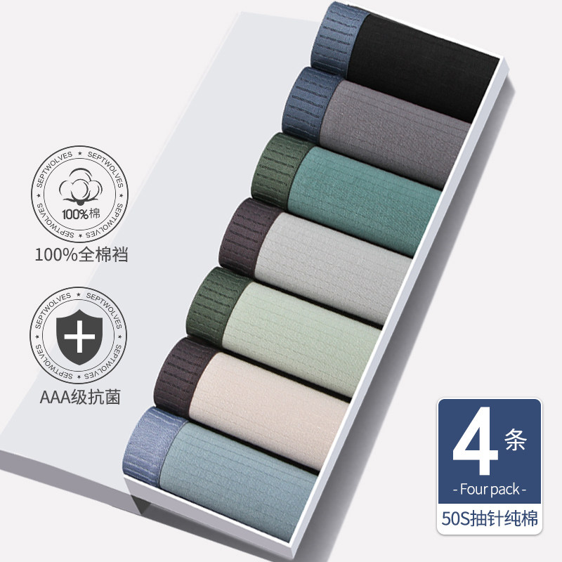 浪莎男士内裤纯棉新款10A抗菌短裤平角透气官方正品男生四角裤衩